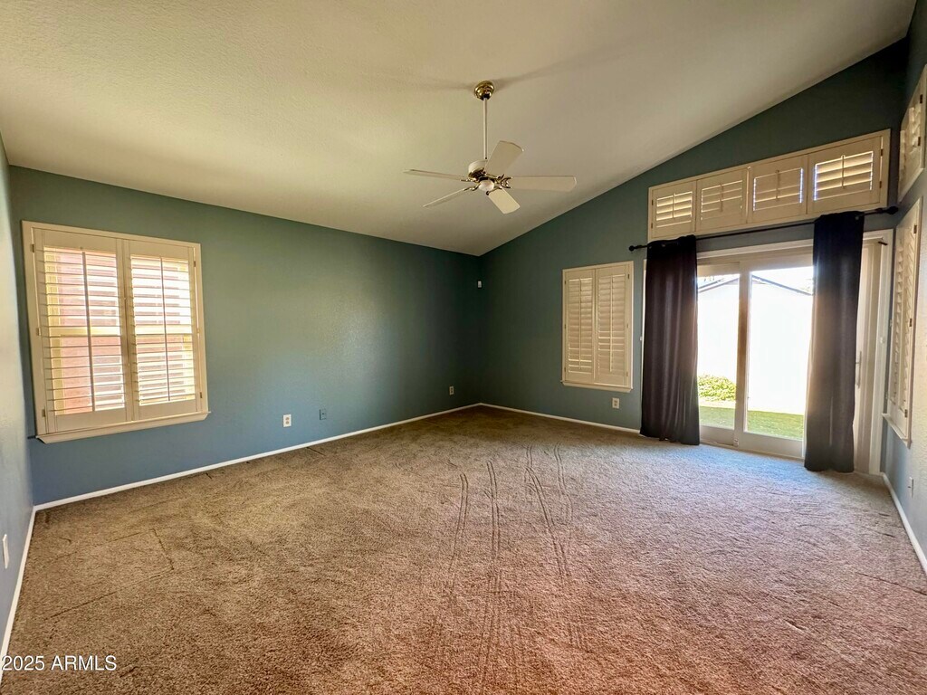 Discover your serene getaway in Paradise Manor! Step through the charming front courtyard,an ideal spot to relax,and into this single-level home featuring 3 bedrooms,2 bathrooms,and a 2-car garage. Perfectly suited for families or those looking to simplify,the home offers a welcoming mix of engineered hardwood,tile,and carpet. The master suite features brand-new carpet (installed May 2025) for a fresh touch. The spacious great room,highlighted by vaulted ceilings and a cozy wood-burning fireplace,provides the perfect backdrop for gatherings or quiet nights in. Comfort comes easy with a 5-year-old AC unit and a brand-new water softener system (May'25). Outside,the backyard is designed for low-maintenance living with a newer drip irrigation system.