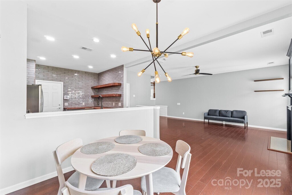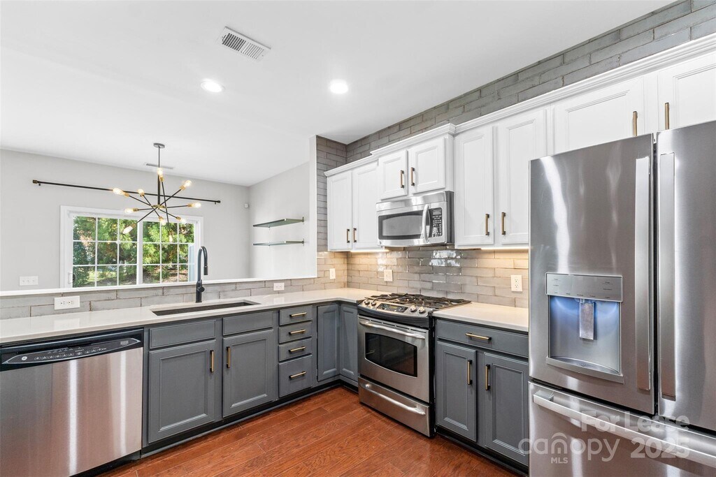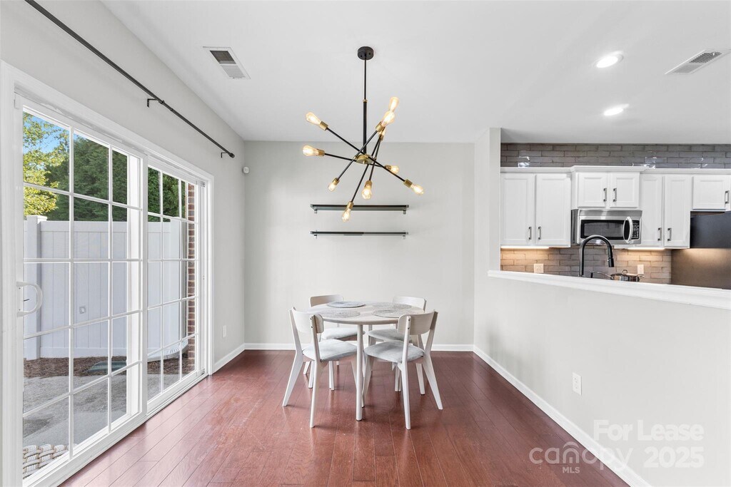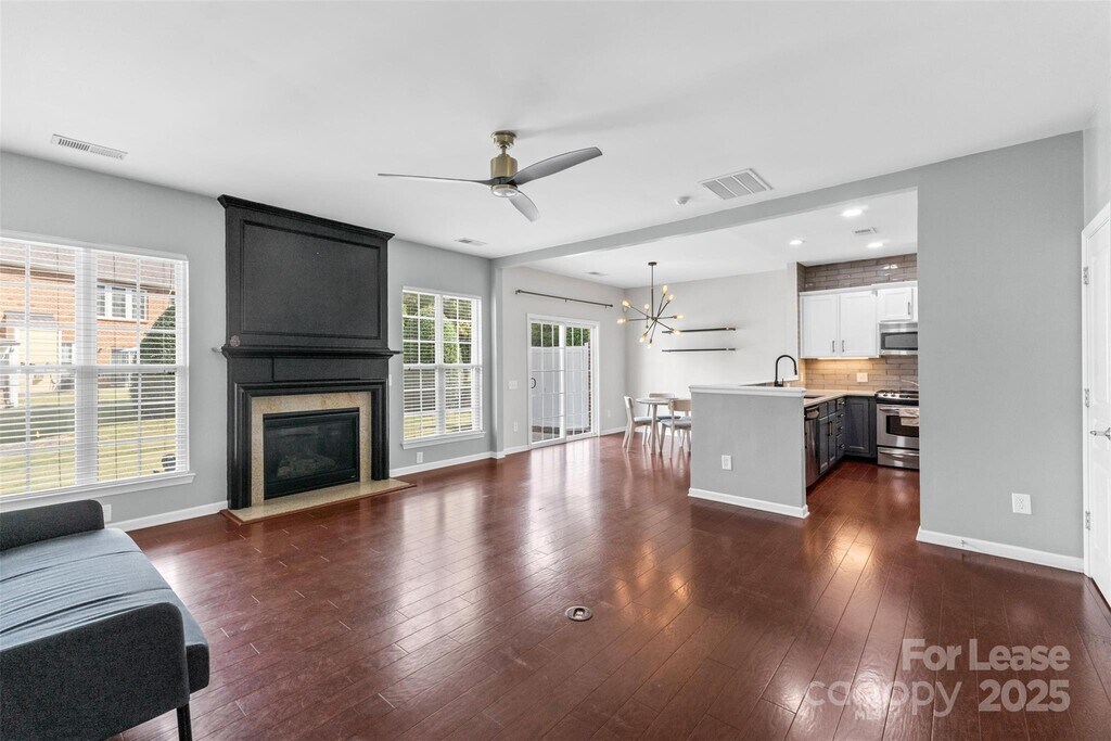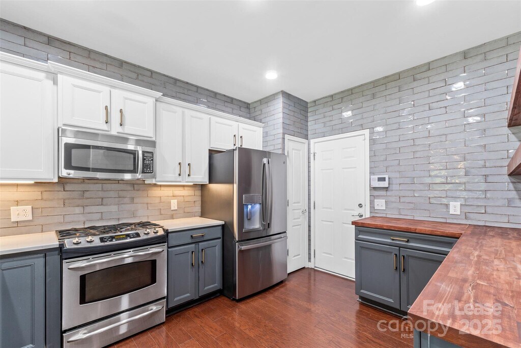 One of the Most Adorable Townhomes Available — Ready to Be Your Next Home! Charming and stylish 3BR/2.5BA end-unit townhome for rent in the highly desirable Ardrey Kell Villages community. Thoughtfully updated with a modern open layout,this home features hardwood floors throughout,designer lighting,and mid-century modern design touches that bring warmth and personality to every room. The gorgeous kitchen impresses with floor-to-ceiling: subway tile,floating shelves,stainless steel appliances,and a blend of butcher block and quartz countertops — combining everyday functionality with standout style. Upstairs,the spacious primary suite offers vaulted ceilings,a large walk-in closet,and a beautifully renovated bath featuring an oversized tiled shower,dual vanities,and sleek,modern finishes with a pop of color. Enjoy the ultimate in walkable living — stroll to grocery stores,restaurants,parks,fitness studios,and more. Every destination is within walking distance,making this one of South Charlotte’s most convenient and vibrant communities. Zoned for top-rated Ardrey Kell schools. Refrigerator,washer,and dryer included. 2 car gsrage! Completely move-in ready!