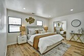 This property has been renovated from top to bottom, offering modern comforts and peace of mind with a brand-new kitchen boasting sleek, modern appliances ideal for everyday living and entertaining, complemented by new flooring throughout and a stylishly fully updated bathroom. The comprehensive renovation includes a new roof, windows, and an updated HVAC system for energy efficiency, along with fully modernized electrical and plumbing systems. Outside, a freshly paved driveway provides ample parking, complemented by the privacy and curb appeal of the spacious corner lot. Don't miss your chance to rent in a prime San Leandro location just moments from BART and major freeways, offering effortless access to the entire Bay Area. Property will be delivered without furniture. Renter's insurance required. Pets deposit of $500 required. Tenant responsible for all utilities. Household monthly gross income of at least 2.5x the rent, good standing credit history & rental references. Note: There is an attached ADU on the property that is currently occupied by one quiet individual. Both units have separate entrances and their own private yard areas.