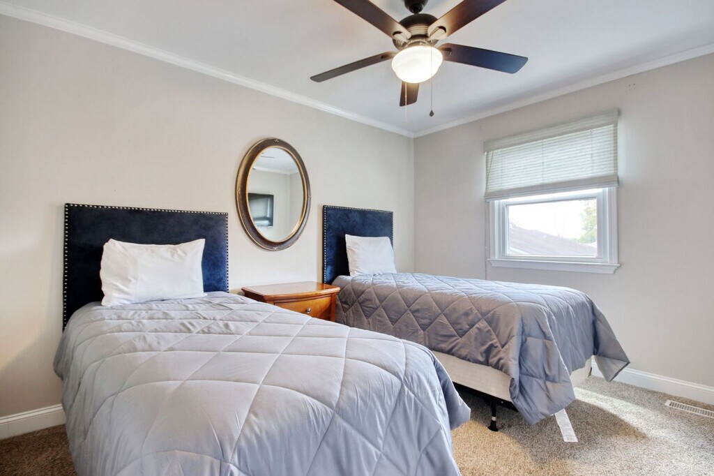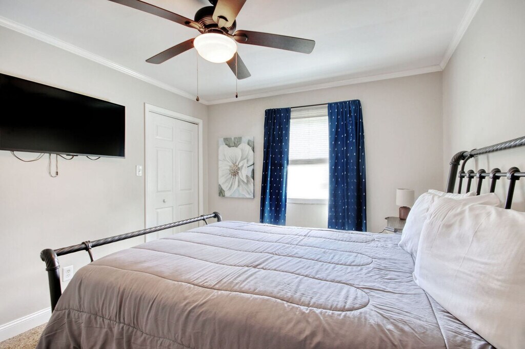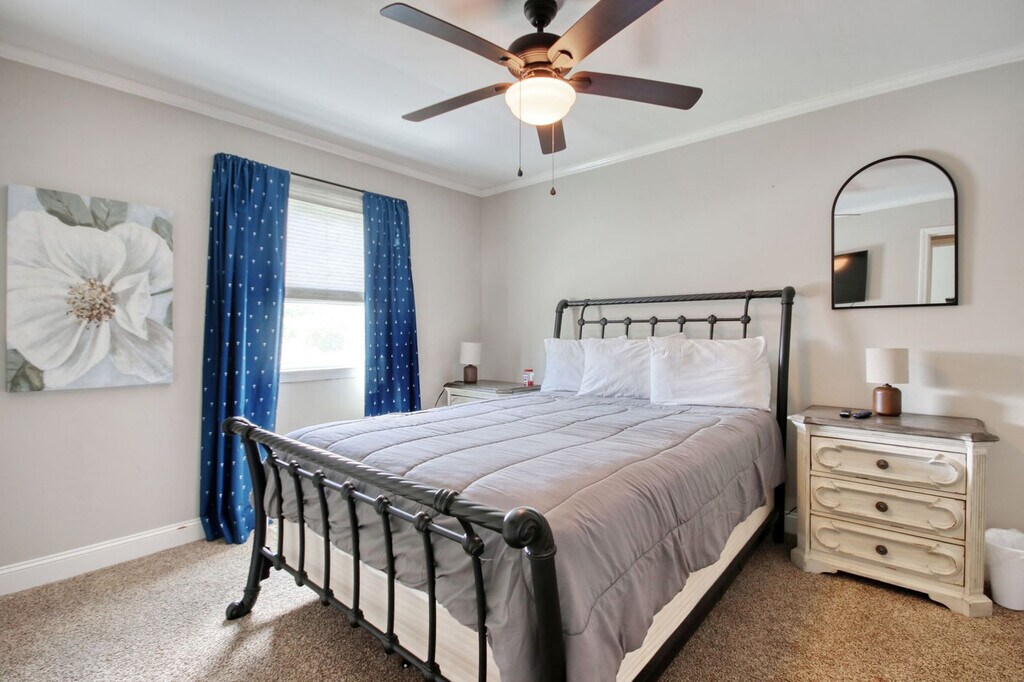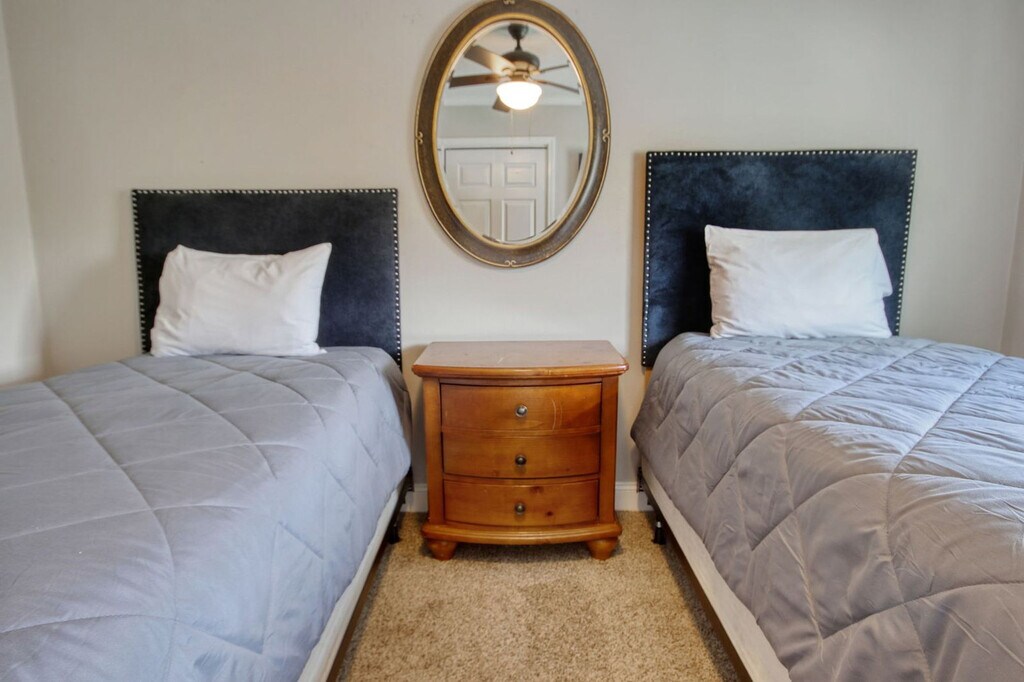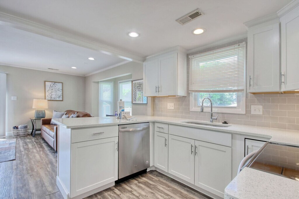 Feel at home in this Myrtle Beach home, designed for both indoor and outdoor enjoyment. This home features a tastefully decorated living space, a full kitchen, and a separate dining area with bay windows. The open layout combines a cozy living room, a dining area, and a fully equipped kitchen. The kitchen is equipped with a microwave, stove and oven, refrigerator/freezer, coffee maker, sink with hot and cold water, glassware, silverware, pots and pans, cooking utensils, and a toaster. This home also features a deck with a dining table, an oversized umbrella, cornhole boards, a gas grill, central AC, and a private washer/dryer. Free parking is available for two cars. Nestled in the heart of Myrtle Beach, this home offers the perfect balance of excitement and relaxation. It's steps from the beach and within walking distance of Broadway at the Beach, a top destination for shopping, dining, and entertainment. The Myrtle Beach Boardwalk and Sky Wheel are a short drive away, offering a vibrant scene with restaurants, bars, and attractions. For upscale shopping and unique dining experiences, explore The Market Common nearby. Nearby dining options include Sea Captain’s House, River City Café, Flamingo Grill, Croissants Bistro & Bakery, and Flying Fish Public Market & Grill. Pets are not allowed per HOA rules, but service animals in compliance with ADA guidelines are accepted. Smoking is strictly prohibited, both inside the home and on the balcony, and violations will result in a minimum $250 fee. Check-in is at 4:00 PM and check-out is at 10:00 AM. [SI]