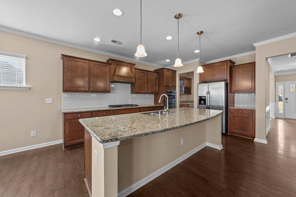 Welcome to 1563 Kythira Dr where comfort, space, and convenience come together. Step onto the inviting covered front porch that sets the tone for this beautiful home. Inside, you'll find an open, light-filled floor plan with beautiful LVP flooring throughout the entire home and a screened porch with a deck overlooking a serene pond perfect for relaxing, entertaining, or playtime. The upgraded gourmet kitchen is a chef's dream, featuring stainless steel appliances, granite countertops, a stylish backsplash, and a spacious center island with plenty of workspace. Whether you're hosting friends or preparing family meals, this kitchen truly shines. The main floor includes a flex room, guest bedroom, and full bath ideal for visitors, remote work, or multi-generational living. Enjoy morning coffee or evening breezes on the screened patio. Upstairs, the primary suite feels like a private retreat with its tray ceiling and bright, airy ambiance. You'll also find three additional bedrooms plus a large bonus room that can be customized as an office, playroom, media room, or workout space. Located in a top-rated school district (note: enrollment may be subject to capacity limits), this home is perfect for families. You'll love the convenience of being minutes from Harris Teeter, Duke Health, Target, Home Depot, restaurants, banks, and more. Quick access to 540, NC-55, NC-64, and Beaver Creek Crossings puts everything you need within easy reach. Downtown Apex, Sweetwater Community & Town Center are just a short drive away, and RDU and RTP are only 20 minutes from your doorstep. Welcome to 1563 Kythira Dr where comfort, space, and convenience come together. Step onto the inviting covered front porch that sets the tone for this beautiful home. Inside, you'll find an open, light-filled floor plan with beautiful LVP flooring throughout the entire home and a screened porch with a deck overlooking a serene pond perfect for relaxing, entertaining, or playtime. The upgraded gourmet kitchen is a chef's dream, featuring stainless steel appliances, granite countertops, a stylish backsplash, and a spacious center island with plenty of workspace. Whether you're hosting friends or preparing family meals, this kitchen truly shines. The main floor includes a flex room, guest bedroom, and full bath ideal for visitors, remote work, or multi-generational living. Enjoy morning coffee or evening breezes on the screened patio. Upstairs, the primary suite feels like a private retreat with its tray ceiling and bright, airy ambiance. You'll also find three additional bedrooms plus a large bonus room that can be customized as an office, playroom, media room, or workout space. Located in a top-rated school district (note: enrollment may be subject to capacity limits), this home is perfect for families. You'll love the convenience of being minutes from Harris Teeter, Duke Health, Target, Home Depot, restaurants, banks, and more. Quick access to 540, NC-55, NC-64, and Beaver Creek Crossings puts everything you need within easy reach. Downtown Apex, Sweetwater Community & Town Center are just a short drive away, and RDU and RTP are only 20 minutes from your doorstep.