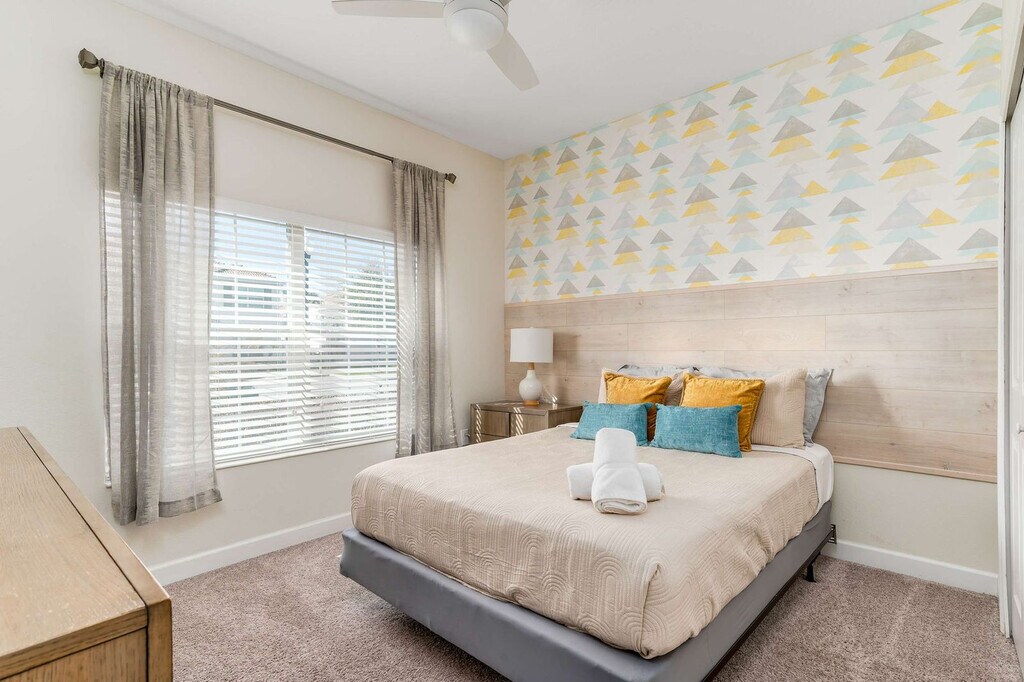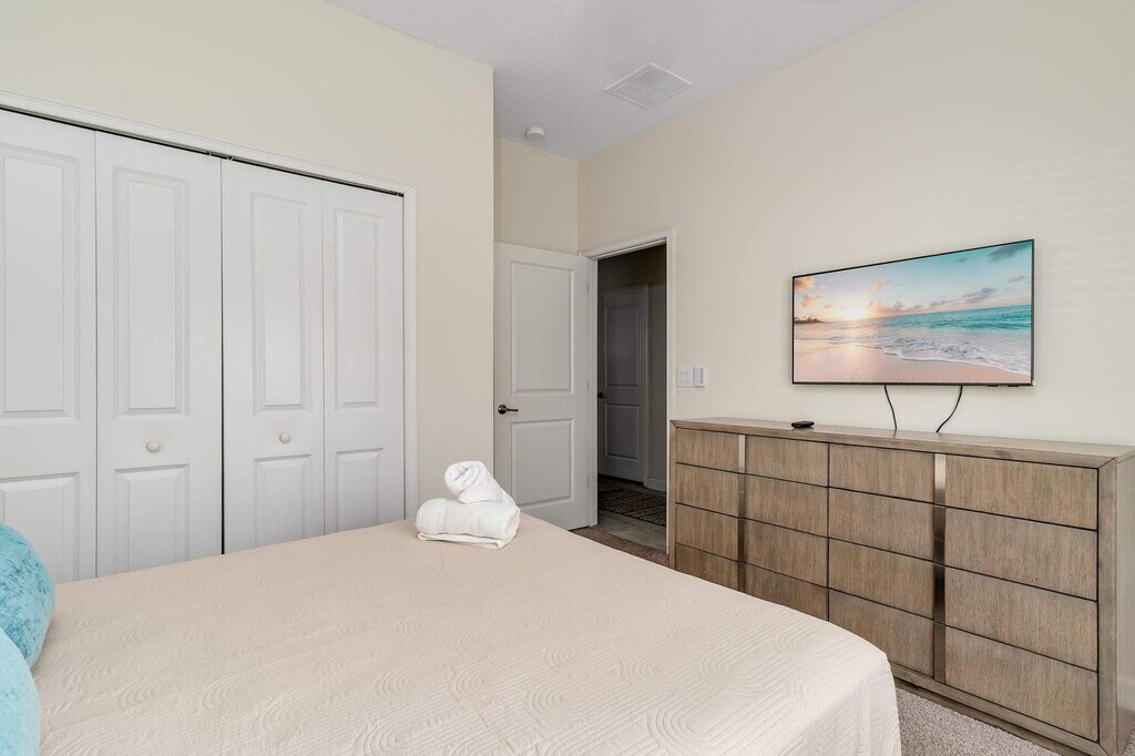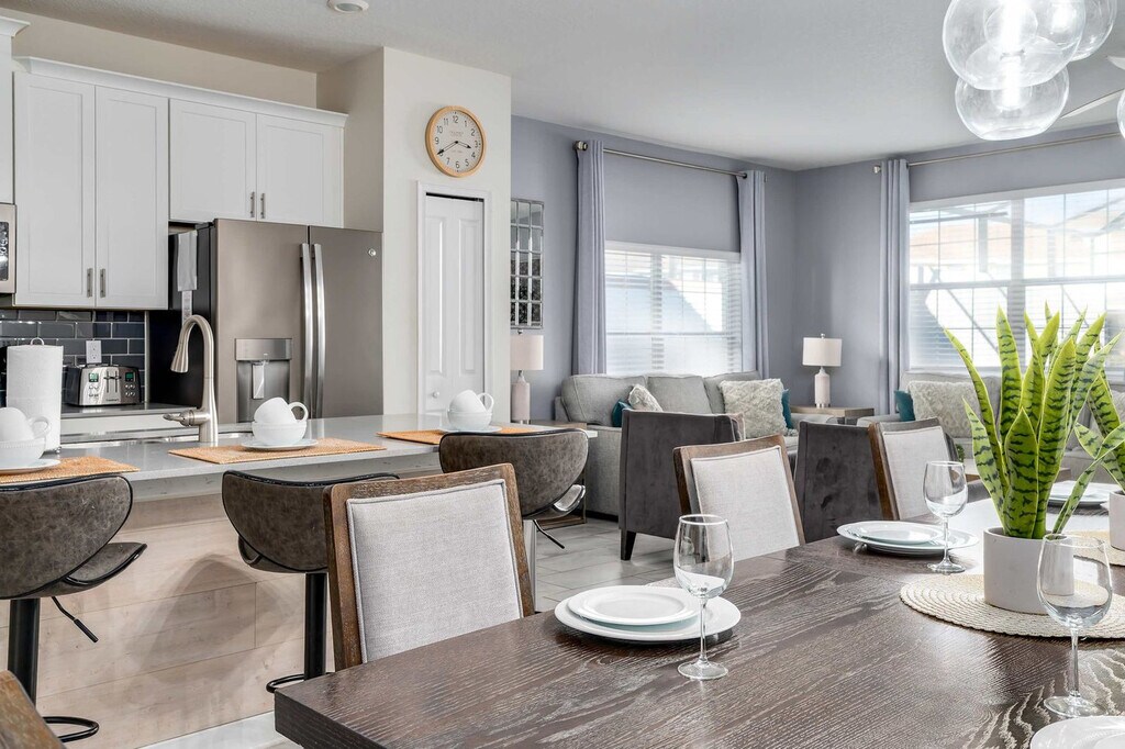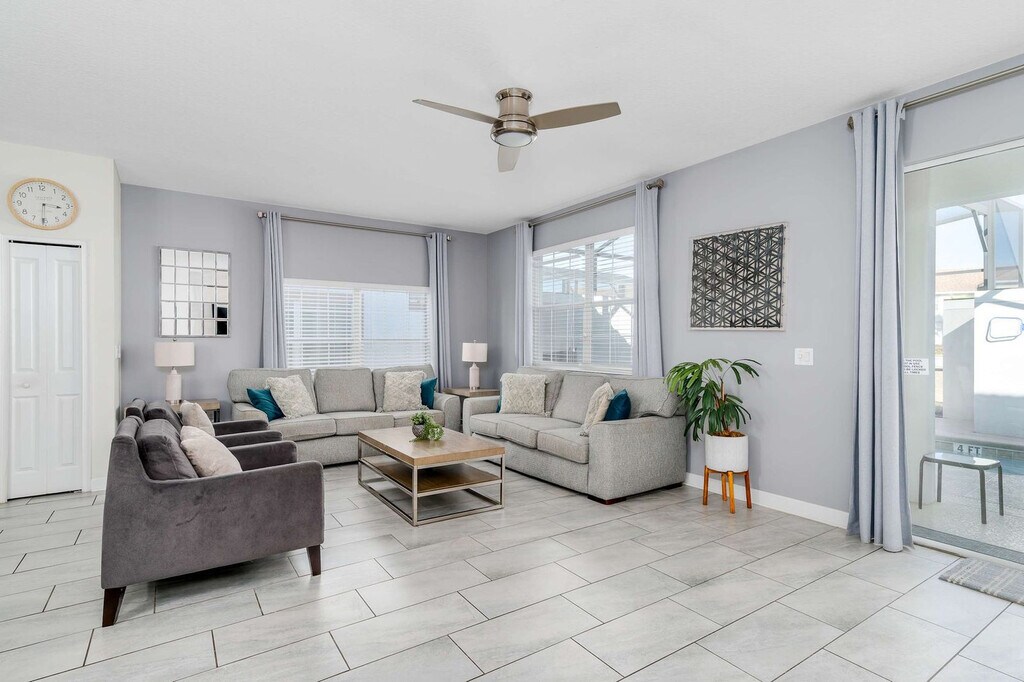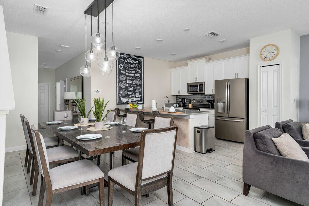 The advertised rate of $5,958/month is the lowest available price, based on a 1 month(s) stay with a move-in date of June 1, 2026. Rates vary depending on the duration of stay, season, and other parameters. For exact pricing and additional pricing components, please visit our website and enter your desired move-in and move-out dates. The rate is applicable when billed upfront; it can be higher if billed in multiple payments. Welcome to a relaxing ChampionsGate retreat where you can unwind, explore nearby attractions, and enjoy both private and resort amenities. This home sleeps 11, with 5 bedrooms and 4 baths, so you'll feel at home in this spacious villa. A large living area offers space to gather, while the fully equipped kitchen includes stainless steel appliances and room to prepare meals together. The indoor dining area is designed for shared meals, board games, or quiet moments between outings. A washer and dryer are available for added convenience, along with essentials and bed linens. Step outside to the private pool, where you can enjoy a refreshing dip. The patio includes outdoor furniture and a backyard area, creating a relaxed place to spend time outdoors. A barbecue grill offers the option for simple outdoor meals when the mood strikes. Your stay includes free access to The Retreat at ChampionsGate, where you can enjoy a resort-style pool with water slide and cabanas, a lazy river, a tiki bar, fitness center, movie theater, games room, playground, volleyball courts, and 6 clay tennis courts. Golf enthusiasts can take advantage of the public 18-hole golf course, driving range, putting green, and golf clubhouse with pro shop. If you would like to add pool heating, the cost is $35 per day of stay. ChampionsGate offers a recreation-rich community with nearby access to Disney, Universal, SeaWorld, and shopping and dining at Posner Park. Major roads, including I-4 and Highway 27, make travel simple, whether you are heading to theme parks or exploring Central Florida. Perfect for large groups seeking a spacious villa in a resort setting, families looking for access to community amenities, and guests who want to stay close to Orlando’s major attractions while enjoying the comfort of an entire home. The Retreat at ChampionsGate promises endless enjoyment for everyone in your family. The resort is located within a gated community and secured by a 24-hour security guard. Pets are welcome with a fee applied. There is absolutely no smoking and no drugs allowed inside the home or elsewhere on the property. Up to two cars may park side-to-side in the driveway in front of the garage. Please don't park on the grass, or alongside the streets parallel to another vehicle. If you need an additional parking spot, there's a section in the community called Lava Tree Dr where you can find extra parking spots for overflow parking. During the day, you can park in the Clubhouse parking lot, but overnight parking is not permitted. Commercial vehicles, trailers, motorcycles, RVs, and similar vehicles are strictly prohibited anywhere in the community and are not eligible for parking passes. Violations may result in towing or fines per HOA rules. Be considerate while socializing outdoors after 10pm and before 8am, and keep excessive noise to a minimum during this time. We reserve the right to terminate a reservation without refund, and/or pursue monetary fines if guests are found to be in violation of any of these rules. Includes a dedicated workspace and Wi-Fi. [SI]