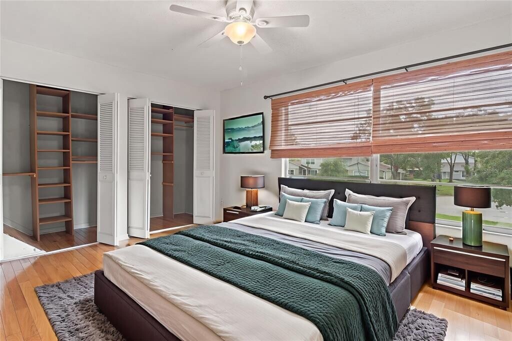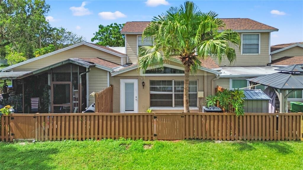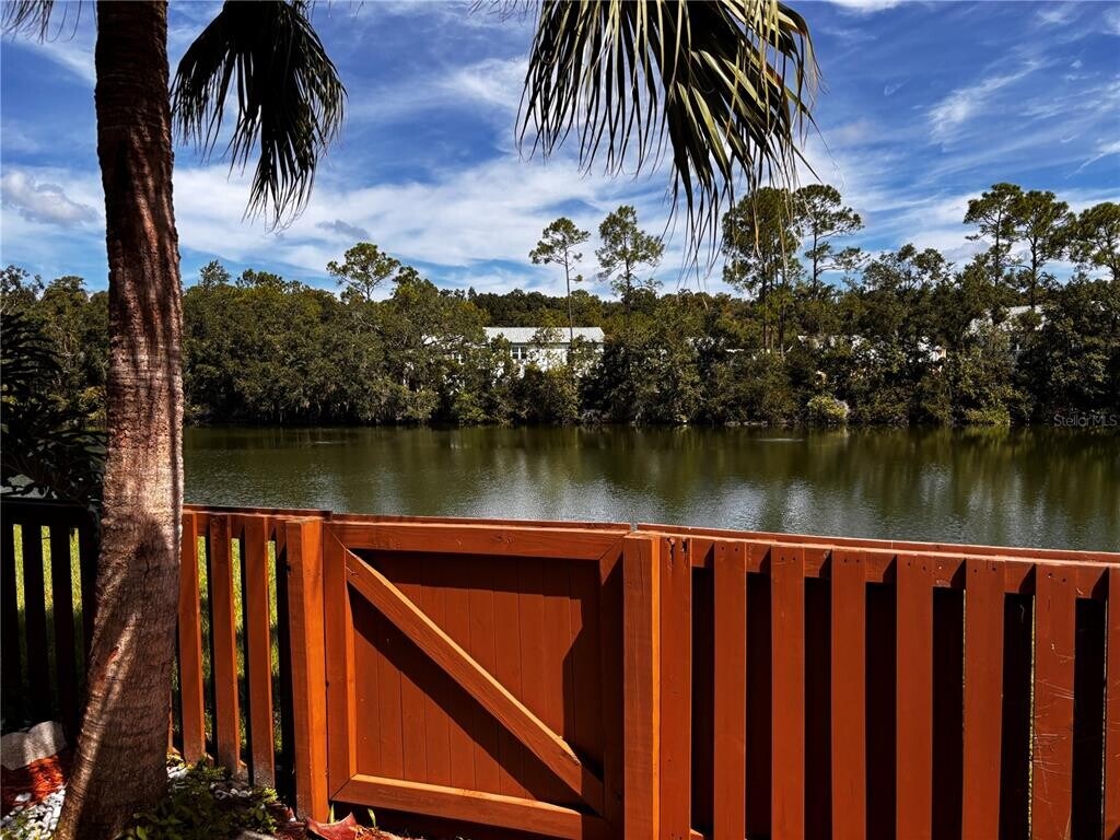 One or more photo(s) has been virtually staged. Waterfront. Enjoy the serenity of a lakefront home with serene water views from the bedroom,living room and fenced back yard. Nestled in a park like setting the end of a cul-de-sac,this home is a quick drive to USF,Moffitt Cancer Center and many of the local research hospitals as well as convenient to shopping,restaurants and local activities. This 2 bedroom 2 bath home is in a POOL COMMUNITY with TENNIS COURTS,PICKLEBALL COURTS and WALKING TRAILS. The kitchen features granite counters and solid wood cabinets. New stainless steel appliances are being installed on July 23. Soaring ceilings give the living room a majestic feel. Hardwood floors add that touch of class. There are not many homes available in such a great,parklike setting at this price. THE AC was REPLACED in2025 which will help with your electric bills MLS# TB8438920