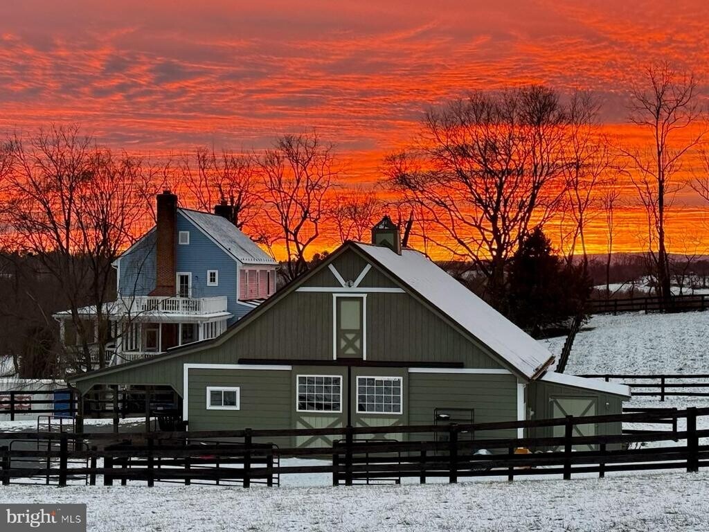 HORSE PROPERTY- Set on 10 picturesque acres just a short walk to the historic village of Waterford, VA, this exceptional luxury equestrian property offers a rare blend of refined country living and premier horse facilities. The custom-built farmhouse features 3 bedrooms and 3.5 baths, filled with natural light through expansive windows and French doors throughout. Elegant wraparound porches on two levels provide seamless indoor-outdoor living and capture sweeping pastoral views. The gourmet country kitchen is anchored by a striking fireplace and opens to a screened porch, creating an inviting space for both intimate gatherings and elevated entertaining. Equestrian amenities are thoughtfully designed , including a six-stall barn with direct stall-to-pasture access, automatic waterers, wash stall, tack room, and generous hay loft. Four fenced paddocks and a large outdoor riding ring with premium sand and bluestone footing complete the estate. An outstanding opportunity for the discerning equestrian seeking privacy, walkability, and a turnkey setting for private enjoyment or a boutique training operation.