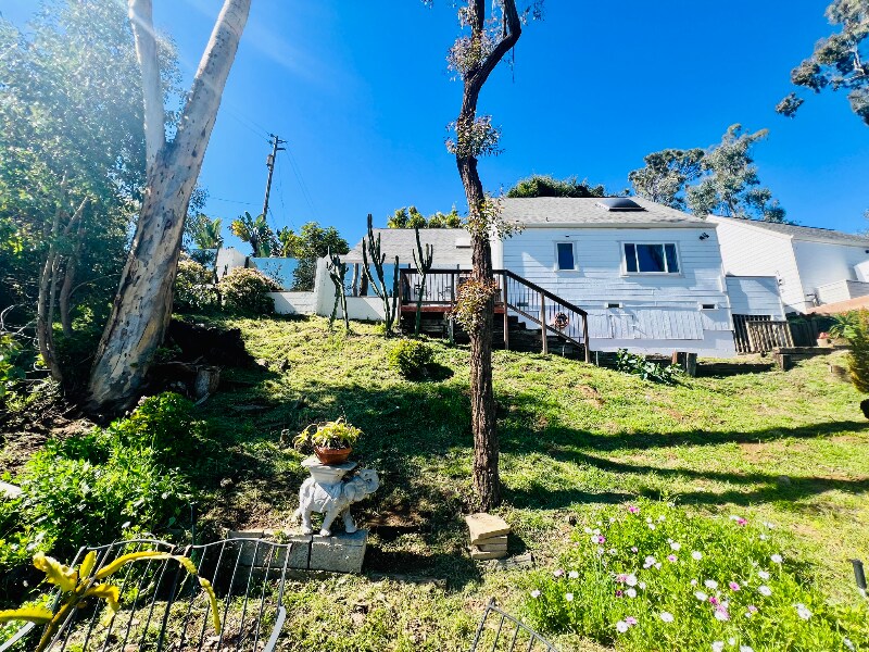Property Id: 2164779 This well-furnished and architect-designed home in Leucadia is a one-of-a-kind find and a mile from the beach. With two stories, three bedrooms, and three bathrooms, it boasts a unique style that captures the eclectic spirit of a funky beach town. The open layout and array of windows invite natural light, and a secluded location on the hillside offers indoor and outdoor privacy from neighbors and traffic on the main road. The house sits on a hilltop above the I-5 and offers easy access to the freeway and highway 101. The fully stocked kitchen includes a gas stove, pull-out dishwasher, InstaPot, stand-up mixer, microwave, and air fryer/toaster oven. Enjoy stand-up showers in every bathroom with the added luxury of a beautiful clawfoot tub upstairs. On the patio, gather around the fire, enjoy meals prepared on the Big Green Egg, or watch games on the large-screen TV. A tranquil pond with waterfall adds to the ambiance. Available for rent in June 2026. One year lease required.