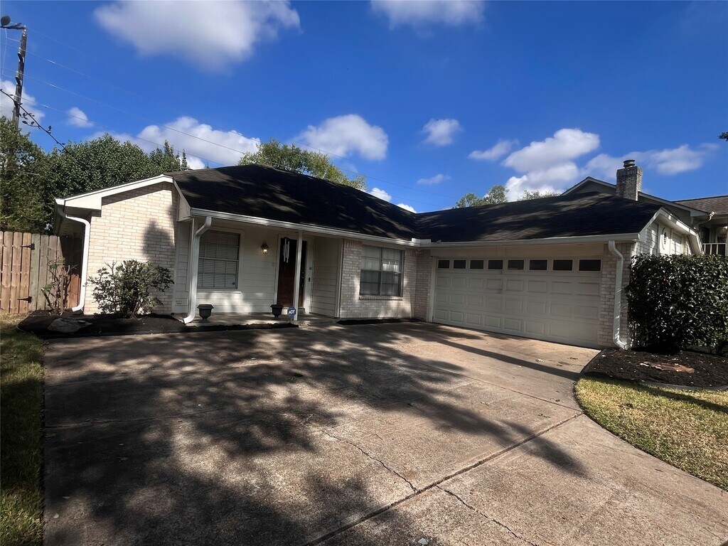 DESIRABLE neighborhood in the heart of Copperfield. One story home 3 bedroom 2 bath,living room with a free standing wood fireplace and a nice size den the living room with huge build-ins the kitchen open up to the living room granite countertop all stainless steel appliances including fridge. Washer and dryer are in the utility room with storage shelving on top. Primary bedroom has double vanity and two walk in closet. New flooring in the secondary bathroom with quart countertop. Backyard with a deck and no back yard neighbor for your weekend get together. Clean rental,will be ready by October 13 Monday! Never Flooded and in CYFAIR ISD MLS# 57473513