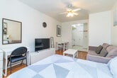The advertised rate of $3,593/month is the lowest available price, based on a 30 day(s) stay with a move-in date of December 1, 2026. Rates vary depending on the duration of stay, season, and other parameters. For exact pricing and additional pricing components, please visit our website and enter your desired move-in and move-out dates. The rate is applicable when billed upfront; it can be higher if billed in multiple payments. Feel at home in this fully furnished apartment located in the Upper East Side on 81st Street between 1st and 2nd Avenue in a walk-up building. This apartment is fully furnished with a queen-size bed, sofa bed, TV, and dining table with chairs. The fully equipped kitchen has everything you need to prepare your meals. All pets must be approved in advance, and there is a pet fee ranging from $200 to $300. Additional cleaning during your stay can be arranged for an additional fee. Located in the Upper East Side on Manhattan, on 81st Street between 1st and 2nd Avenue, this apartment is right next to the Q subway line on 2nd Avenue and a few minutes from the 4, 5, and 6 subway station (77th or 86th and Lex), the M79 cross-town bus, Central Park, the Metropolitan Museum, cinemas, 2nd Avenue coffee shops, and many other stores. Utilities such as electricity, Wi-Fi, and streaming Roku TV are not included in the monthly rent and will cost $330 per month (between June 1st and October 1st, utilities are $360 per month). The payment should be made through the Resolution Center. AC will be installed around Memorial Weekend (window unit). For some cases between June 1st and September 1st, a minimum stay of 90 days may be required. To ensure a smooth check-in process, please coordinate your arrival time in advance, at least 72 hours prior to check-in. For last-minute bookings, please provide advance notice of a few hours. A late check-in fee of $50 will be charged for arrivals after 10 PM, and a fee of $100 will be charged for arrivals after midnight. Check-out time is by 11 AM. Before you check out, please empty the refrigerator and throw away all trash. No smoking, parties, or loud music are permitted. Each guest must present a valid government-issued photo ID at check-in, along with a VOE letter and a copy of their current paycheck or confirmation of school enrollment. [SI]