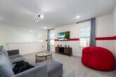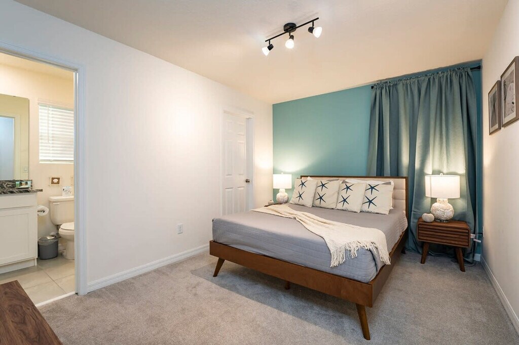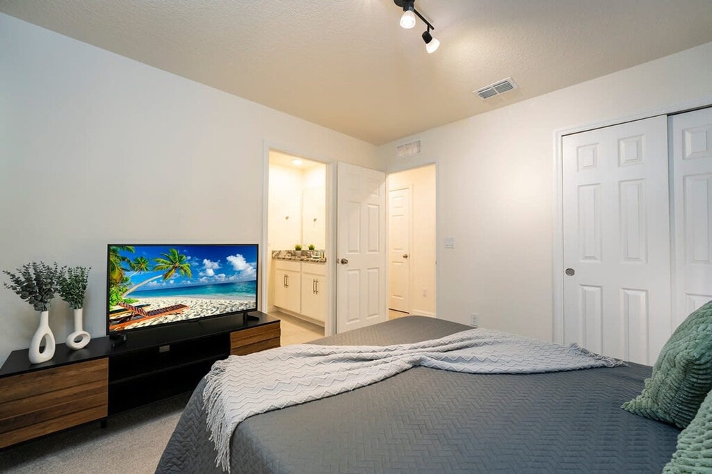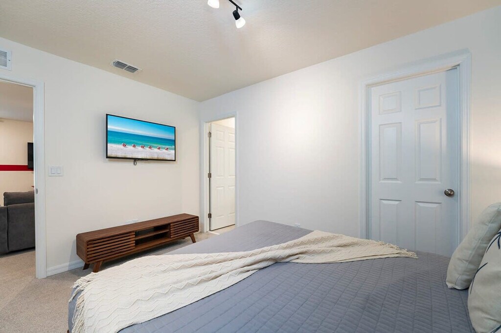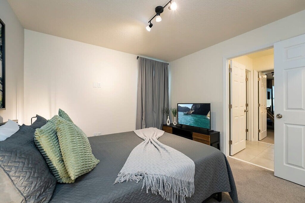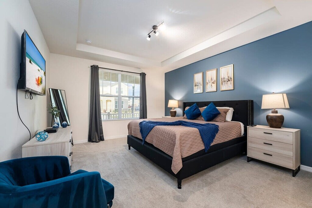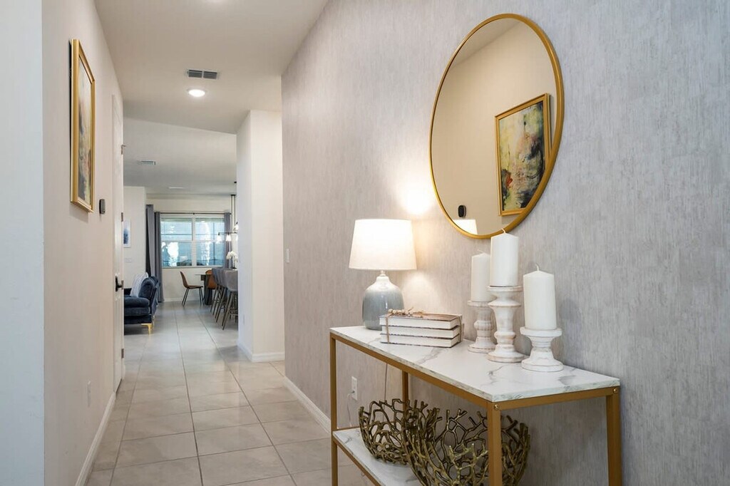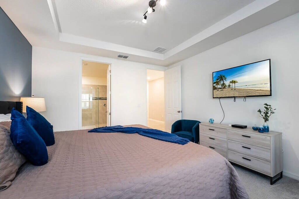 Escape to paradise at this stunning 6-bedroom villa in Kissimmee, just 15 minutes from Orlando's major attractions. Located in Solara Resort, this luxurious retreat boasts a private screened pool with a covered lanai, a gym, and a BBQ, perfect for families and groups. With 12 beds and 4 bathrooms, everyone has space to relax and feel at home while enjoying the Florida sunshine and creating unforgettable memories. This amazing 6-bedroom luxury home is designed to live the Disney dream. The loft living room is tastefully decorated with a large smart TV and apps available to sign in, perfect for enjoying great family time. The fully equipped kitchen has all the necessary equipment and tools to prepare any type of meal for you and your family. Sheets and towels are provided, along with shampoo, conditioner, body soap, toilet paper, and kitchen supplies for your arrival. Pool heat can be activated upon request with an additional fee of $45 per day plus taxes. The grill is available for a one-time fee rental which includes one propane tank. Please note that the pool and spa heating system may not function optimally in extremely cold weather conditions, and there is a minimum three-night charge for heating. Located in Solara Resort, this villa is just 15 minutes away from Orlando's major attractions, making it an ideal spot to explore the best of Florida. Quiet hours are between 10:00 pm and 7:00 am. Only guests 25 years or older are allowed unless accompanied by a responsible adult. No parties or events are permitted, and only registered guests can stay overnight. Vehicles parked in violation of the parking rules are subject to immediate towing. Charcoal grills are strictly prohibited, and usage may lead to a financial fine of up to $500 and eviction from the home. Check-in instructions might be withheld until verification is completed. Free internet access Wi-Fi is available throughout the villa, ensuring you stay connected during your stay.