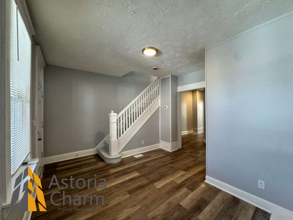 This home offers a flexible layout with 4 bedrooms and 2 full bathrooms, or the option to use it as a 3 bedroom with a den. The main level features an open living room with a fireplace accent, updated paint and flooring, and plenty of natural light. There is one bedroom on the first floor along with a full bathroom that includes a standing shower. The eat in kitchen includes a refrigerator, electric stove, microwave, and a stackable washer and dryer. The unfinished basement provides additional storage space. The home has central heat and window AC units for cooling. Enjoy a covered front porch and convenient street parking. 3 or 4 bedroom Vouchers are accepted, and pets are welcomed after completing our pet screening profile. Pricing is valid for 30 days after application submission.