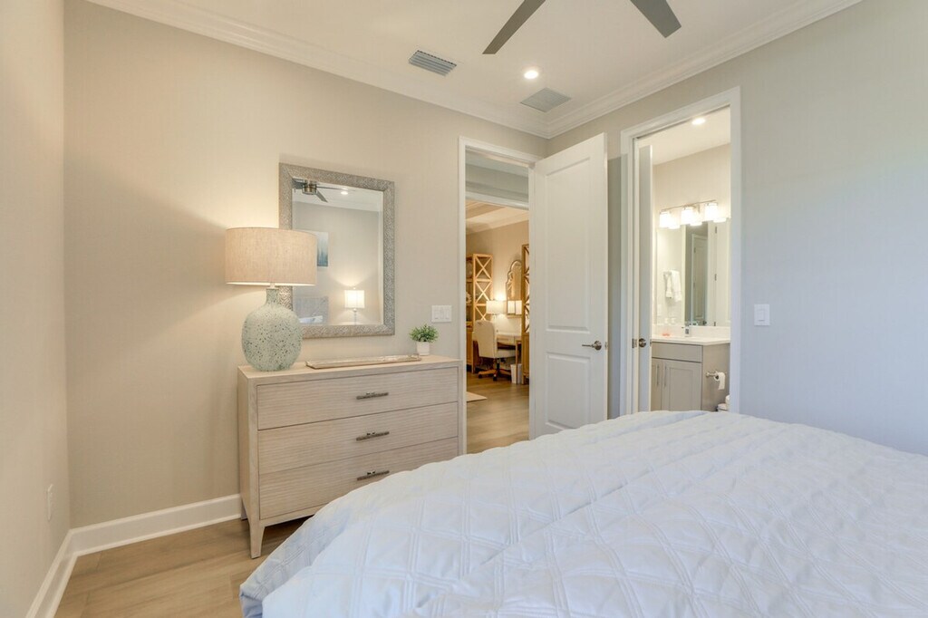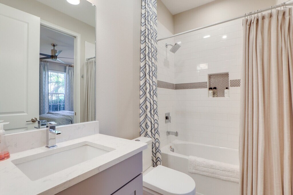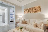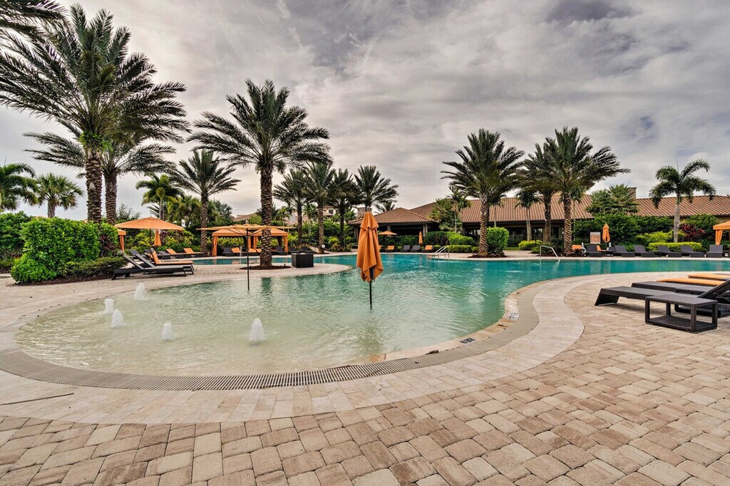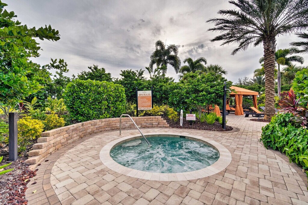 Feel at home in this 2-bedroom, 2-bath villa in Bradenton's Esplanade at Azario gated community. This single-story villa requires one small step to enter. This stylish villa features high-end finishes and resort-style amenities. The kitchen includes a refrigerator, stove/oven, dishwasher, coffee maker, blender, microwave, cooking basics, dishware/flatware, trash bags, paper towels, a dining table, and a breakfast bar. You can also enjoy the convenience of central air conditioning and heat, ceiling fans, an in-unit washer and dryer, laundry detergent, an iron and board, hangers, linens, towels, and a hair dryer. Garage parking is available for two vehicles, and driveway parking is available for one vehicle. Street parking is not permitted. Sip coffee on the screened lanai as the sunrise hits the pond, then tee off at Lakewood Ranch Golf or unwind on Anna Maria Island. Afterward, end the day with a sunset swim in the community pool. Quiet hours are from 10:00 PM to 7:00 AM. Smoking, pets, events, parties, and large gatherings are not allowed. Guests must be at least 30 years old to book. Includes a home office and free Wi-Fi. [SI]
