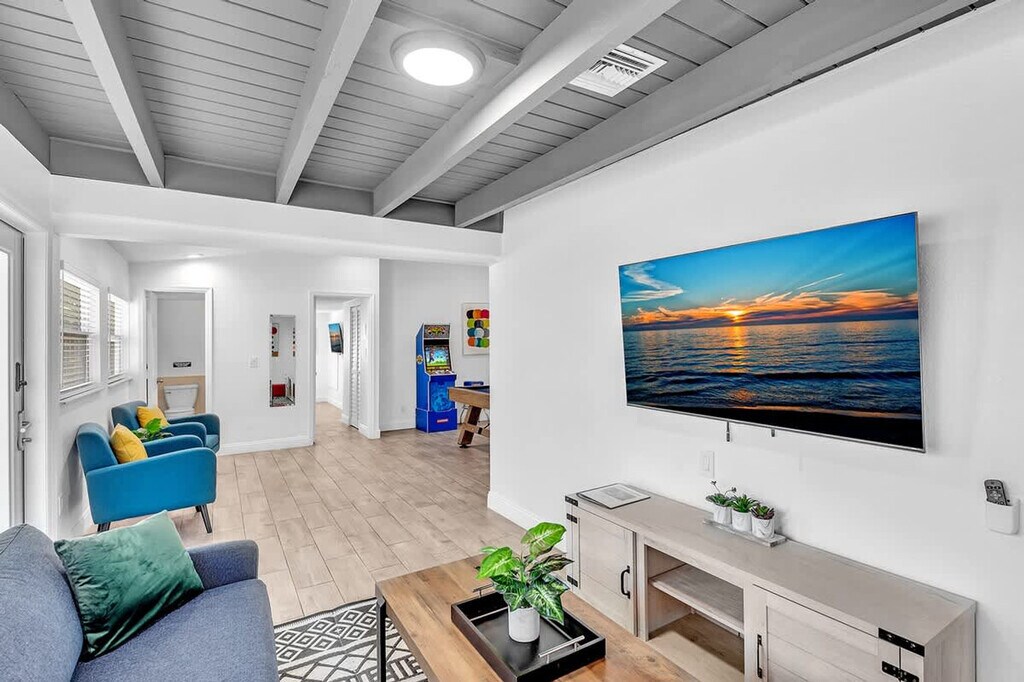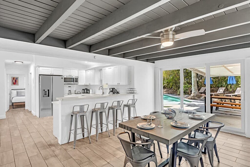 Feel at home in this 1,650ft² (151m²) house in Oakland Park, just a 5-minute drive from the beach. This recently remodeled house features a heated pool, arcade games, pool tables, smart TVs in rooms, fast Wi-Fi (+1Gg), an outdoor South/Flo jungle vibe, an on-site washer and dryer, and a fully fenced backyard. Two single double-thick air mattresses can be provided upon request. Pool heating is available for an additional $50 per day with at least 48 hours' notice. Free parking is available for 3 vehicles. Located in the South Corals neighborhood of Oakland Park, this vacation home is near many attractions. Bahia Mar Marina and Port Everglades are nearby, and for those in the mood for shopping, Las Olas Boulevard and Sawgrass Mills are easily accessible. Fort Lauderdale Beach, The Galleria at Fort Lauderdale, and Lauderdale by the Sea Beach are a short drive away. The Butcher's Barrel, Rebel Wine Bar, Lips Restaurant, and Rendez-Vous Bakery and Bistro are within walking distance. The landscaper will enter the property for scheduled lawn maintenance every 15 days, and the pool technician will conduct pool maintenance twice a week. If the BBQ grill is not cleaned after use, an extra $50 cleaning fee might apply. No smoking is allowed inside the house. Parties or loud music are prohibited. This is a pet-friendly property; please indicate the number of pets you are bringing before booking. [SI]