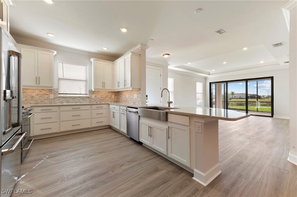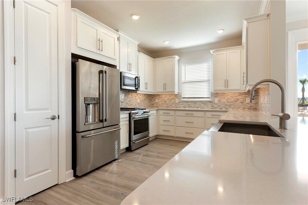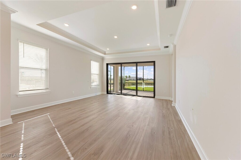 VILLA AVAILABLE w/AMAZING DOUBLE LONG-LAKE VIEWS!!! BRAND-NEW 3 Bed plus a Den VILLA OFFERED & NEVER LIVED IN. SMALLER PETS ALLOWED WITH APPROVAL WITH LARGE BACKYARD. Southern facing lakeview,very light and bright unit. Unfurnished. No seasonal changes in price. Featuring nearly 2000 sqft of living space which also includes a 2-car garage and a screened-in extended lanai. 2 Bedrooms plus a home office with pocket doors for privacy. Included with all appliances and washer and dryer. Very bight and sunny. Tons of natural light. Highly upgraded unit which features: Impact resistant windows and doors,quartz countertops,stainless streel kitchen appliances,shaker style cabinetry,walk-in closets,tray ceiling and more! Esplanade is ideally located off US 41 in sunny Naples,placing you within close proximity of beautiful Marco Island and Gulf beaches. Downtown Naples is also just a short drive away,with upscale shopping,dining and cultural attractions. NATURAL GAS in the community. Life at Esplanade provides unique opportunities centered around signature amenities and wellness programs to invigorate the mind,body and spirit. As a resident of Esplanade by the Islands,you will have access to world-class amenities and resort-level service. Enjoy grand wine tastings,exclusive culinary experiences,exotic excursions,live concerts,spa & wellness events and so much more! Amenities include a Wellness Center and Day Spa (hair,nails,facials,massage),Bahama Bar & Grille,Dog-Park,Tennis,Pickleball,multiple Pools & Hot Tub,Fitness Center,Planned Culinary Arts Center and so much more! New Publix connected to development next door. Make this brand-new villa your home in this amazing resort in Americas #1 place to live,Naples,FL!