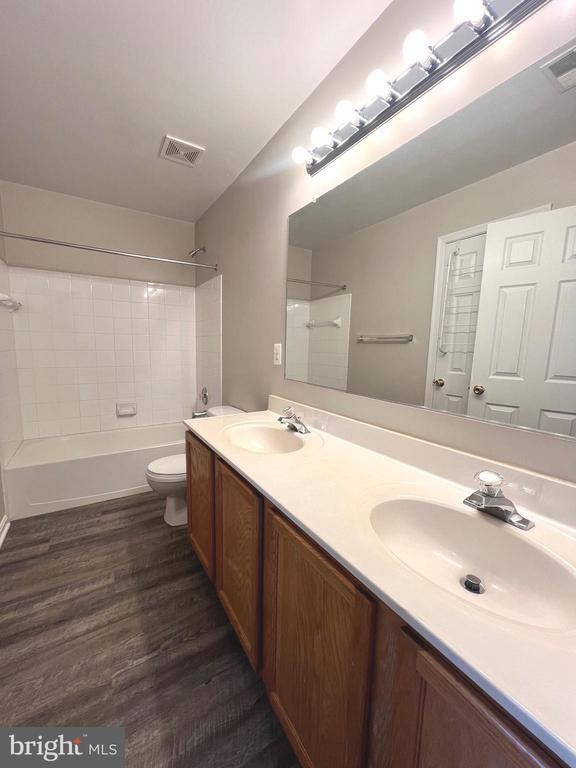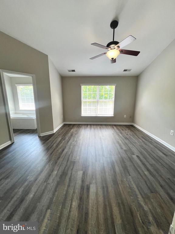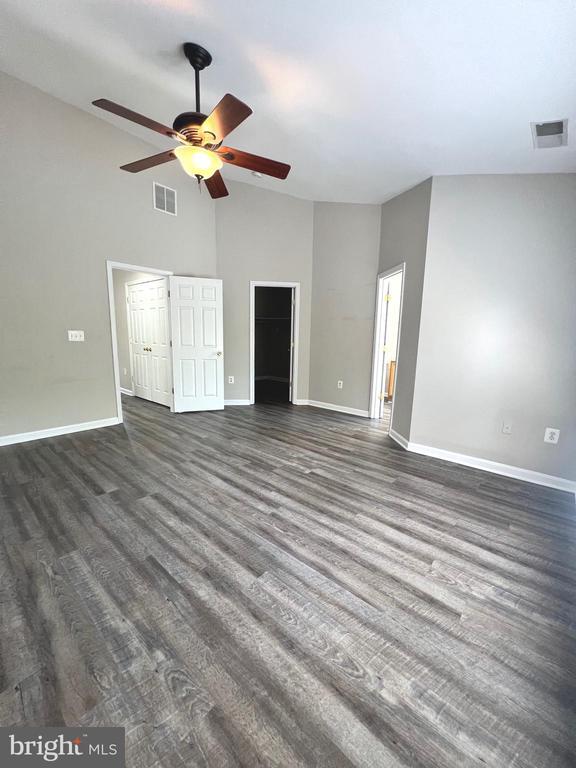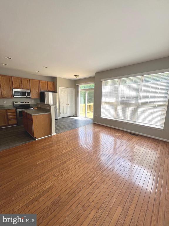 A Spectacular End-Unit Retreat - 3 Bedrooms - 2 Full & 2 Half Baths. Discover the perfect blend of style, space, and sophistication in this spectacular end-unit townhome nestled in the highly sought-after Markhams Grant subdivision. Flooded with natural light and boasting premium upgrades throughout, this home offers an unparalleled living experience. Step onto the main level where gorgeous hardwood and modern LVP floors guide you through an open-concept layout. The heart of the home is the large eat-in kitchen, a chef’s dream featuring sleek stainless steel appliances, a functional center island and a cozy breakfast nook bathed in abundant natural sunlight, an expansive family room and a huge dining area, perfect for hosting holiday dinners or intimate gatherings. This level also has a powder room. Just off the kitchen, step out onto your newly installed, over-sized deck. Whether you’re sipping morning coffee or hosting a summer BBQ, you’ll love the peaceful views overlooking the private common area. Retreat to the comfy upper level. The Primary Suite is a true standout, featuring dramatic vaulted ceilings, a generous walk-in closet, and a spa-like ensuite bath complete with a deep soaking tub and a separate shower, double vanities for a stress-free morning routine. Two additional bright bedrooms share a full hall bath with a linen closet and shower/tub combo. For ultimate convenience, the front-loading washer and dryer are located on this level—no more hauling laundry up and down the stairs! The fantastic lower level has access to the 1 car front loading garage, features walkout to the backyard, a spacious recreation room anchored by a cozy gas fireplace, making it the ideal spot for movie nights, a home office, or a gym. A second half-bath on this level ensures guests never have to wander far. Commuting and shopping have never been easier! This home is perfectly positioned for modern convenience minutes from I-95, Route 1, and Quantico Marine Base, just a stone’s throw from Stonebridge at Potomac Town Center, Wegmans, Potomac Mills, and local favorites like Wawa. Don't miss your chance to rent one of the finest end-unit in Markhams Grant. Schedule your private tour today and welcome home!