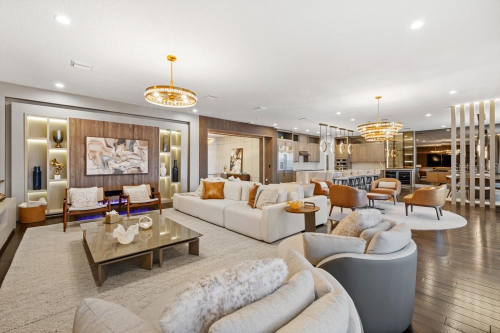 Welcome to unparalleled luxury lakefront living in the prestigious Lakeshore Preserve community. This spectacular 5-bedroom,5.5-bathroom estate offers over 5,000 square feet of meticulously designed living space with custom millwork,built-ins,and tailored shelving throughout. Each bedroom includes a private en-suite bathroom,while the master suite is a serene retreat with a spa-like bath,top-of-the-line finishes,and a custom walk-in closet. Expansive living and dining areas flow seamlessly,showcasing stunning lake views,and a detached office space with built-in desks provides the perfect work-from-home or creative setup. Step outside to your private oasis featuring a summer kitchen,Italian tile patio,outdoor fireplace,sunken fire pit,infinity pool,and retractable balcony screens,plus an outdoor shower,secret storage,and versatile spaces for media,fitness,or lounging. Set on just under an acre of beautifully landscaped grounds,the home offers resort-style amenities including a clubhouse,fitness center,community pool,and playground,with the convenience of Panther Lake Elementary School in the community and easy access to shopping,dining,and major roadways. Offered fully furnished or unfurnished,this estate delivers the perfect combination of luxury,sophistication,and lakeside living at its finest. Schedule your private showing today. MLS# O6380124