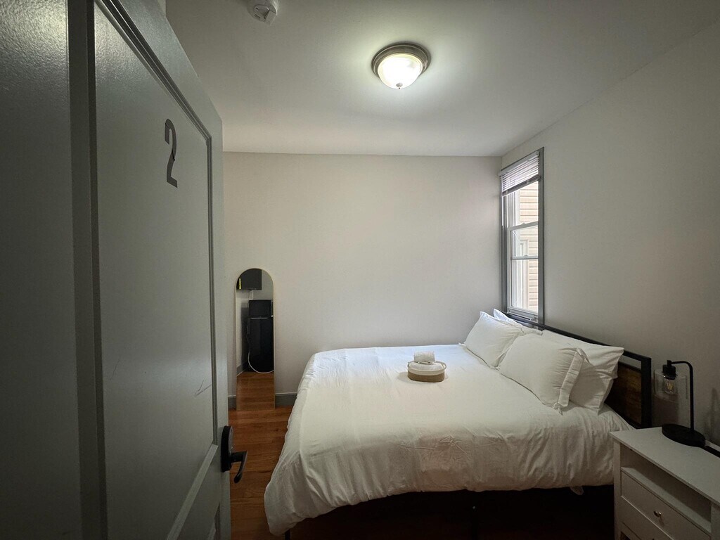 Available furnished or unfurnished. Newly renovated, decorated and furnished 4-Bed Apartment Enjoy bright, airy bedrooms in a newly renovated 4-bedroom, 2 bathroom apartment less than 45 minutes from Manhattan. This private second floor apartment features a queen bed in each bedroom, brand new A/C, microwave, smart TV, desk and chair complete with a closet. The unit features modern bathrooms, high ceilings, hard wood floors, fully equipped kitchen and a dining area with fast (free) WIFI and NETFLIX - ideal for work or relaxation. The natural light compliments this cozy home. A commercial, coin-operated washer and dryer are in the basement, available 24/7. This unit is most suitable for roommates or a large family, given the layout. Just an 8-minute walk to the NYC-bound bus (under 45 minutes to Manhattan), with PATH trains, cafés, and restaurants also nearby. Street parking is free with no resident permits required but be sure to follow posted signage. The unit includes a 24/7 property manager available to address any emergencies, repairs or questions. No smoking, pets, or parties.