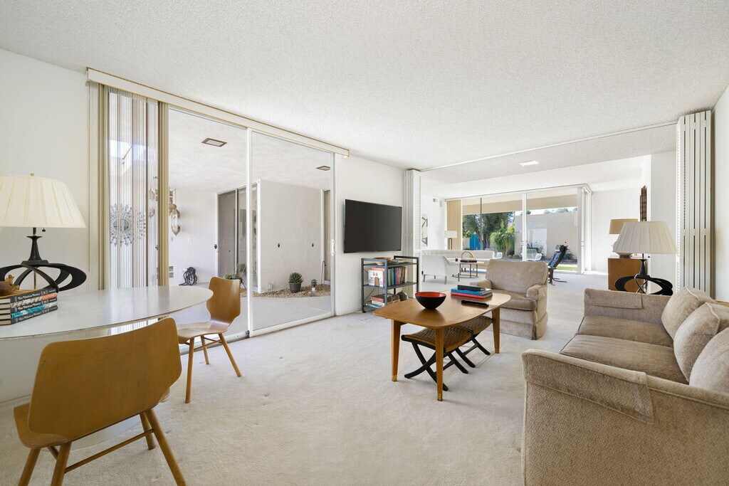 Welcome to the iconic Seven Lakes Golf and Country Club. This architecturally significant home,designed by renowned mid-century architect Richard Harrison,offers a spacious two-bedroom layout with an additional den and a detached casita. The property is distinguished by its 12-foot walls of glass and soaring ceilings,epitomizing the seamless blend of indoor and outdoor living that defines mid-century design. Expansive clerestory windows frame stunning views of the San Jacinto Mountains,wrapping the front of the property in natural light. With meticulously preserved period details paired with contemporary elegance,the home's interior showcases authentic mid-century furnishings that capture the timeless character of the era. This rental includes access to the Seven Lakes Golf and Country Club and the active outdoor community provides a range of activities,including 15 pools and spas,golf,tennis,and pickleball. Whether you're looking for a serene retreat or an active vacation,this rental has everything you need for an unforgettable stay.