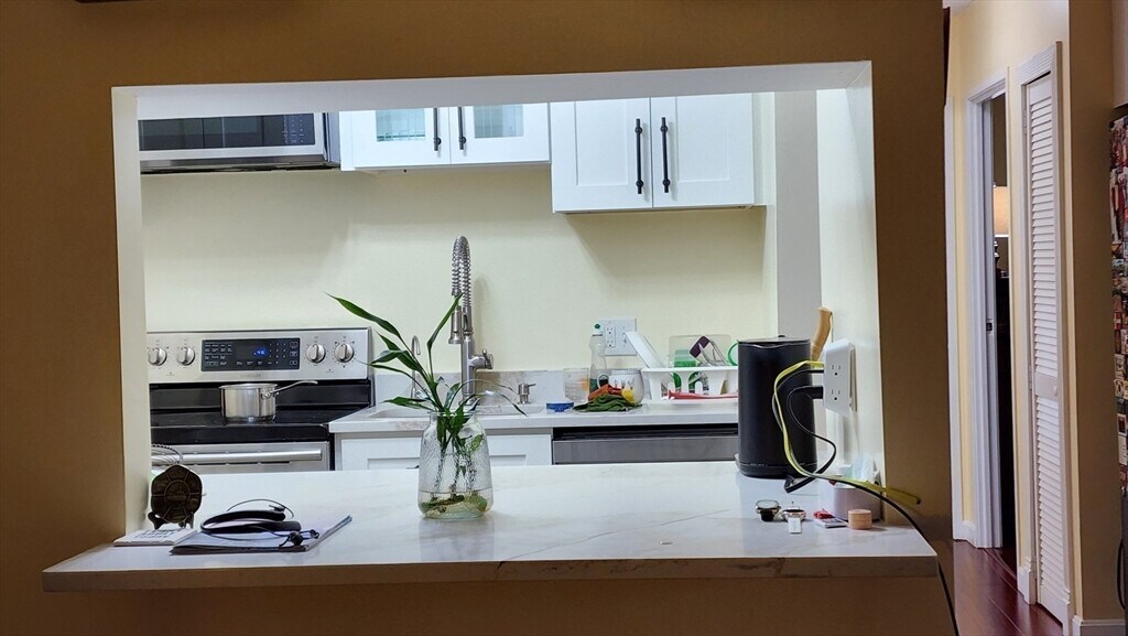 Stylish 2 Bed,1 Bath Condo for Rent in Stoneham! Discover this beautifully updated high-rise condo featuring hardwood floors throughout,modern shaker white cabinetry,and elegant quartz countertops. The open layout includes a spacious living room and kitchen area that flows out to a balcony,perfect for relaxing. Unit has ample space for storage. Located just minutes from the commuter rail and major highways,you’ll enjoy easy access to local restaurants and parks. Additional perks include off-street parking and shared laundry facilities. Rent is $2,700,with heat and hot water included. Available November 1,2025. MLS# 73445028