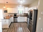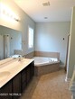 Welcome to 157 Hawks Point Road, a beautiful 3-bedroom, 2-bath home located in a quiet neighborhood in Jacksonville, NC. This well-designed home features a desirable split floor plan that offers both privacy and an open-concept layout, perfect for modern living.Step inside to vaulted ceilings and a spacious living area that flows seamlessly into the kitchen and dining space--ideal for entertaining or relaxing with family. The kitchen offers plenty of counter space and storage, making meal prep a breeze.The primary suite is a true retreat, complete with a large walk-in closet and a private bathroom featuring a separate soaking tub and shower, as well as dual vanities. The additional two bedrooms are located on the opposite side of the home and share a full bath, providing a great setup for guests.Additional features include washer and dryer hookups, a two-car garage, and a fully fenced backyard--perfect for pets, play, or backyard gatherings. Enjoy the peace and quiet of suburban living while still being close to Camp Lejeune, shopping, and dining.Don't miss your opportunity to make 157 Hawks Point Road your next home. Schedule a tour today and see all this lovely property has to offer!