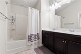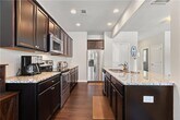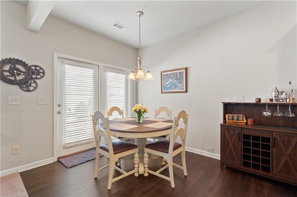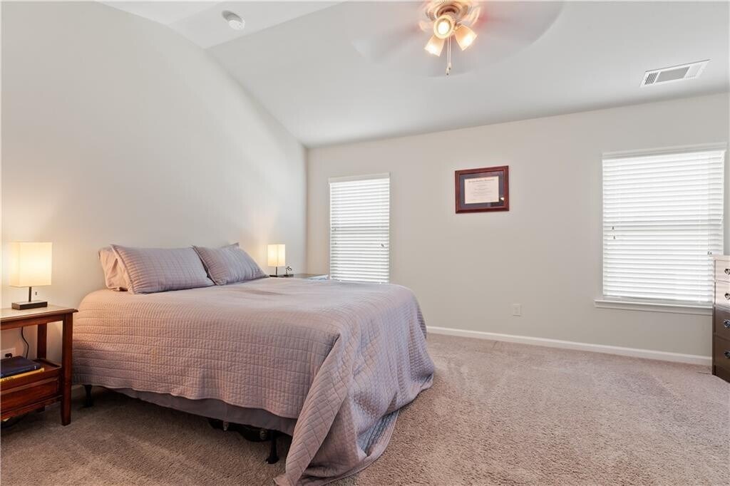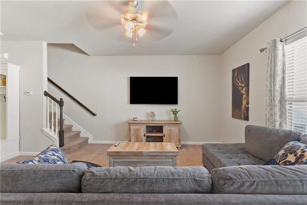 Wonderfully maintained 3 bedroom,2.5 bathroom home conveniently located close to 400,outlet mall,restaurants,wineries and the North Georgia mountains. Enter into your open concept great room with huge granite island,stainless steel appliances,eat-in area and pantry. Private fenced backyard with patio. Single car garage easily accessible to kitchen. Half bath completes the main level of this move-in-ready home. Upstairs are three sizable bedrooms,laundry and two full baths. The primary bedroom is connected to the oversized bath with a large garden tub,double sinks and granite vanity. The secondary bedrooms share the hall bath. This neighborhood has lawn maintenance,playground,and community pool included in the monthly HOA fees which are paid by the landlord. Fridge is included.
