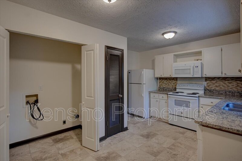 Two Bedroom, one-bath duplex now available in McDonough! Walking distance to Town Square! Enjoy one-level living with new LVP flooring & paint, a semi-private shared yard, and off-street parking. The covered front porch and private back deck are perfect for relaxing. The eat in kitchen includes custom painted cabinets, new granite countertops, a full appliance package and a separate laundry area with washer/dryer hookups.