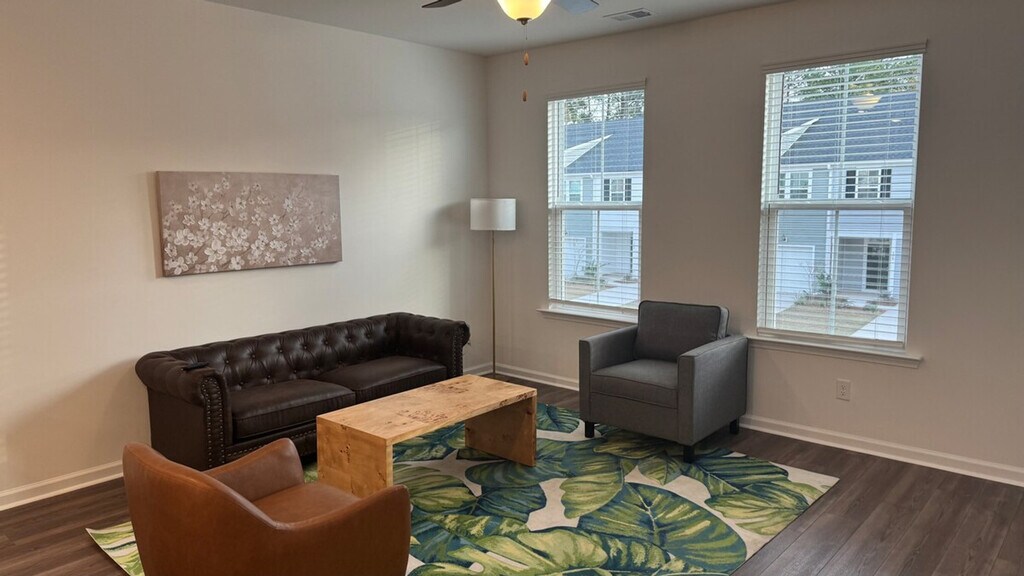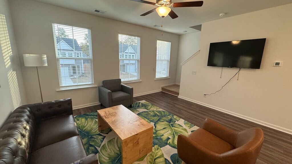 Nestled a few miles from the historic charm of Charleston, South Carolina, feel at home in this meticulously planned townhome located in the thriving and picturesque city of Goose Creek. This newly built 4-bedroom, 3.5-bath townhome offers a refined living experience designed for relaxation. This home features a spacious kitchen and living room set-up with large windows and plenty of lighting. With one bedroom on the first floor and three bedrooms on the third floor, there is plenty of space for your entire group to feel comfortable. This home is located in a community that offers residents a refined living experience designed for relaxation. Each home features elegantly crafted interiors, blending modern style with classic Southern charm. Abide by quiet hours from 10 pm to 8 am. Only decorate with painters tape; guests will be liable for any damage caused by decorations. The onsite leasing center requires all guests to submit a photo ID and a basic criminal background check. [SI]