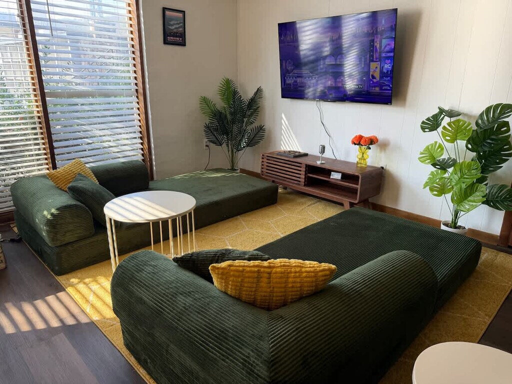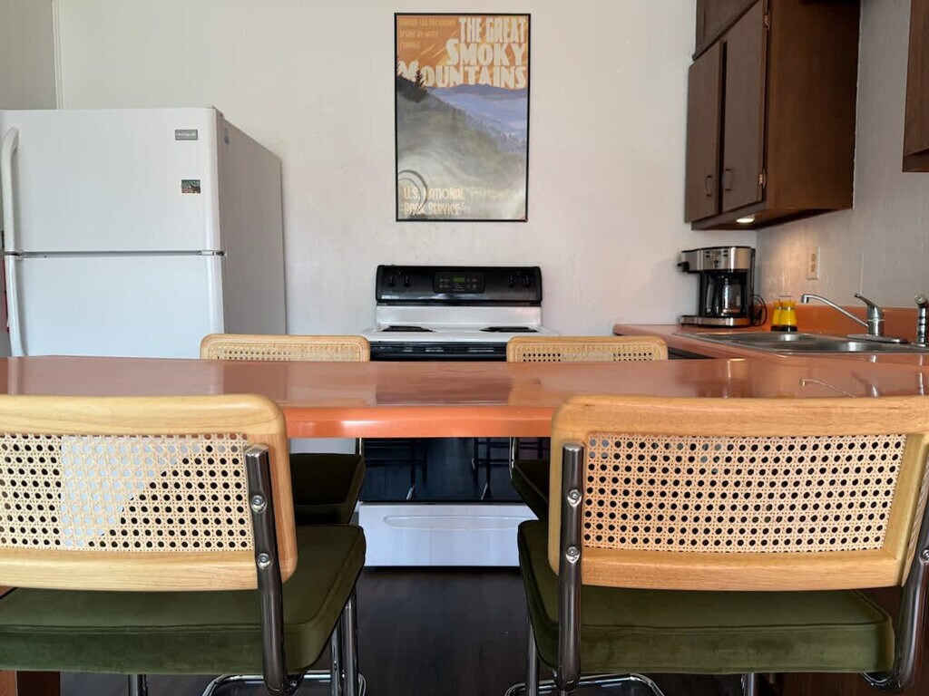 Welcome to "The Best Location in Gatlinburg" and feel at home in this private mid-century retreat, just steps from the heart of downtown and the entrance to the Great Smoky Mountains National Park. This charming family home features retro touches. This centrally located apartment offers a unique blend of mid-century style and modern comfort. With convenient access to the national park and local amenities, everything is at your fingertips, whether you're bypassing traffic via the Gatlinburg Bypass or heading straight into the national park. The property is within walking distance to many shops, restaurants, and attractions in downtown Gatlinburg, a block away from the main Gatlinburg downtown strip. Nearby attractions include Ober Gatlinburg, Great Smoky Mountains National Park, Gatlinburg SkyLift Park, Ripley's Aquarium of the Smokies, and Hollywood Star Cars Museum. Quiet hours are observed between 9 pm and 8 am. Locals must contact the host prior to instant booking to prevent parties at the property. There is a fee schedule for house rules violations. If guests are found to have left an excessive mess or had a party which results in extra cleaning, guests will be responsible for extra cleaning charges. Smoking and vaping are not permitted inside the property, and this violation will incur a $200 per day fee. Pets are not allowed in this apartment. If there is evidence of pet hair found on furniture there will be an additional $75 deep clean fee. Guests are responsible for any stains that are not easily removable and may be charged for cleaning costs or replacement of damaged items. Unauthorized late check-out is a $50 fee. If not vacating on time leads to other company losses you will be billed for those as well, including guest refunds. There will be a $50 fine for every key and parking credential not returned. If you do not follow our check-out instructions you will be billed an additional $75 fee. If your party receives a lease violation you will receive a $500 penalty. [SI]