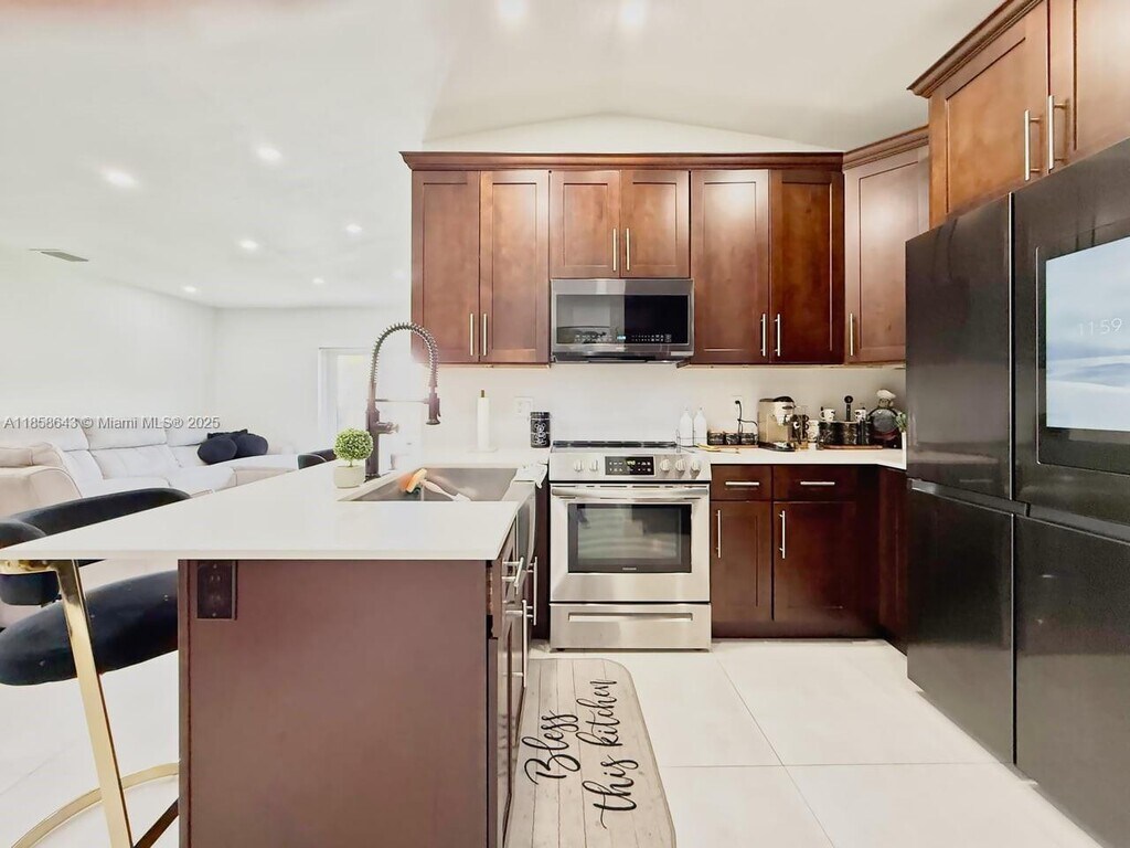 Beautiful single-family home in one of the most desired locations in Kendall. This property features 4 spacious bedrooms and 2 full bathrooms, perfect for the whole family’s comfort. Enjoy Miami’s weather with the stunning saltwater pool and a modern outdoor kitchen, ideal for gatherings and barbecues. The indoor kitchen has been fully renovated with luxury finishes and top-of-the-line appliances. The home also offers a large terrace, perfect for relaxing or enjoying an outdoor meal. Best of all, there is no HOA. A unique opportunity you won’t want to miss!
