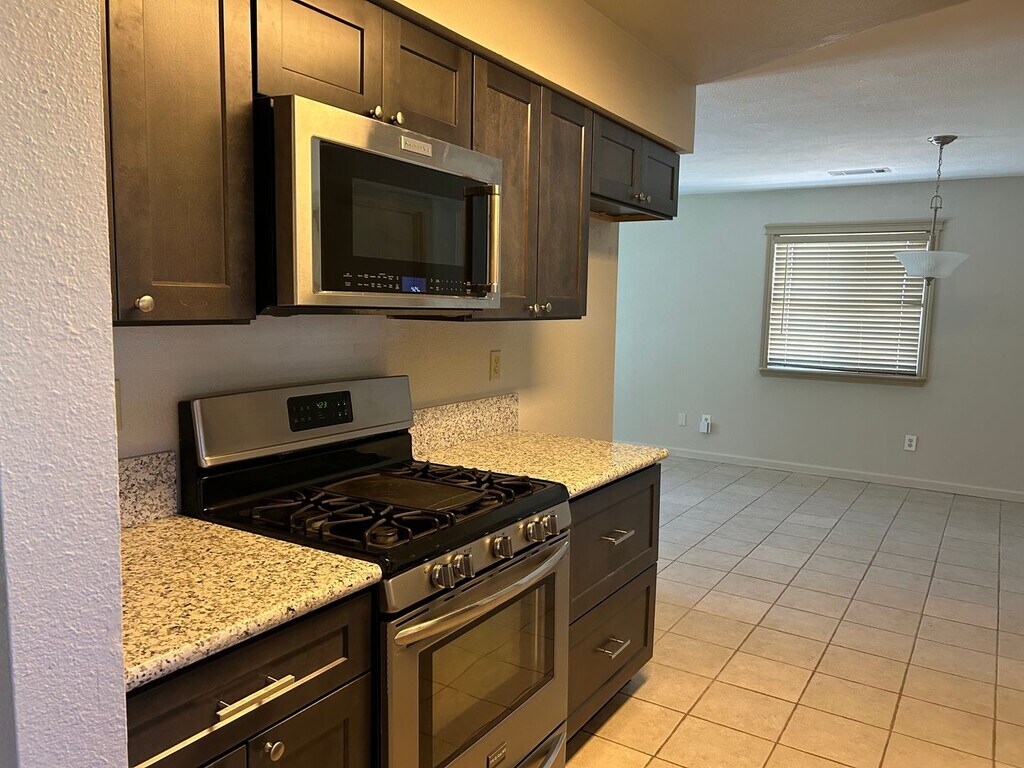This 3 bedroom, 2 bath home features New kitchen cabinets, granite counters with stainless gas range & microwave hood, ceiling fans through-out, 2" wood blinds', ceiling fans thru out and a whole house fan. Entire home has New paint, hall bath has new New tiled shower Nice front and backyard with covered patio for outdoor enjoyment Extra Storage shelfs in garage, Close to schools PETS OKAY - Monthly Pet Rent and Increased Deposit NO SMOKING ONSITE Applicant understands and agrees, if approved, in addition to advertised rent the following fees will be assessed : * TPA $5.00 - This monthly fee covers the costs associated with processing checks, online payments, tenant portal access, online maintenance requests, electronic statements, and monitoring tenant liability insurance compliance. * Cleaning and damage Deposit: - Refundable upon successfull move-out inspection TO VIEW A PROPERTY - go to website rentals follow instructions at top of page