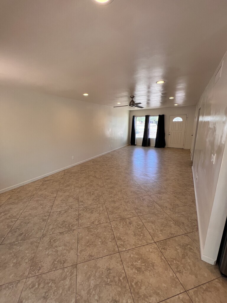 Spacious 4 bed 2 bath house. Tile throughout. Ceiling fans. Nice big enclosed backyard. Covered parking. Covered patio area. Close to schools, entertainment, dining, hiking/walking trails and transit. 12 month lease. $1,700 a month, deposit $1,850. Dogs allowed. Cats NOT permitted. 1342 Sqft - 4 bedroom/2 bathroom.