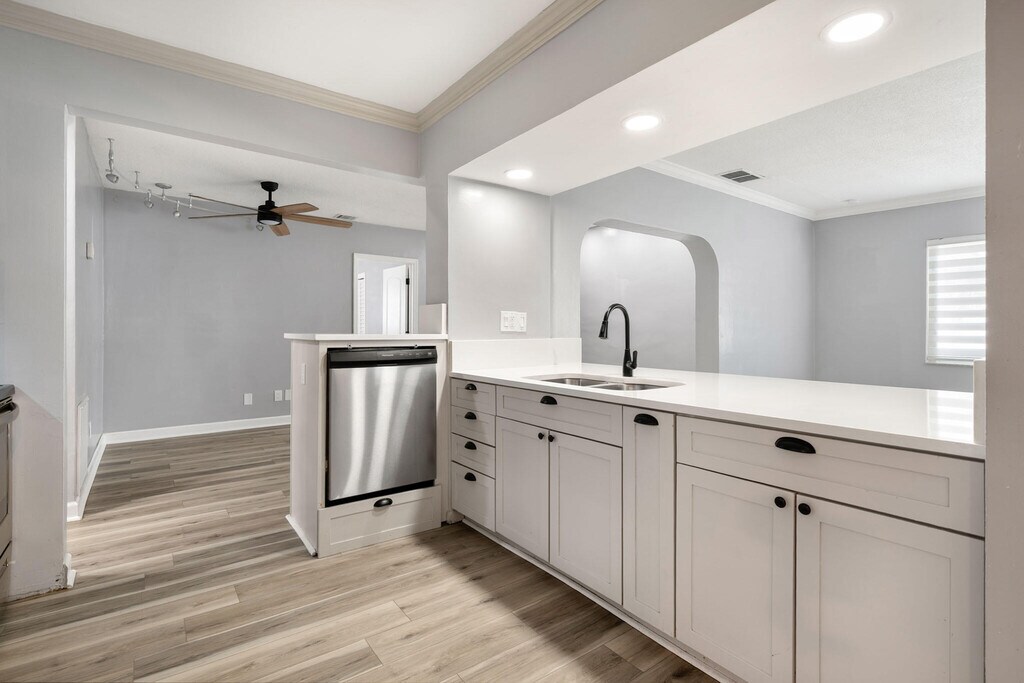 Nestled in the highly sought-after community of Boca Raton Square, this home is a true gem offering both style and function. Step inside and be greeted by the warm glow of new vinyl flooring and the sleek, modern feel of stainless steel appliances and updated light fixtures. The kitchen is a chef's delight, complete with beautiful countertops that provide ample space for meal prep and entertaining. With impact windows and doors throughout, you can enjoy peace of mind and energy efficiency. The layout is perfect for flexible living, with two bedrooms boasting their own full en-suite bathrooms, offering a private retreat for guests or family members.
