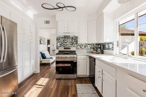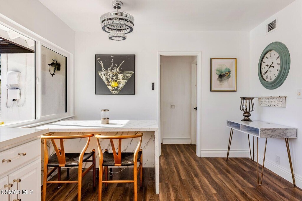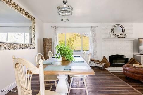 6 Spacious BEDROOMS Plus DEN & 4 BATHROOMS with shower massage Towers! Fully Furnished & Fully Equipped & Ready Move-In! 1 Sprawling Level, HUGE POOL & grassy area with Fruit Trees. Gorgeously Remodeled Single-Story Home in the Heart of Thousand Oaks- Close to Everything! The Front of Home overlooks Peaceful Hillsides. Feel as if YOU have been Transported to Another World of Luxury in Your OWN Private 1-STORY Mid-Century Style Home with 6 Spacious Bedrooms, Remolded Retreat! Sparkling Breathtaking Pool. Mesmerizing Backyard with Privacy & Large Fruit Tree. The Open Space will be a Recreation Game Room with Game Tables, Swing chairs, dining etc. Views of the Trees and climbing Plants out each window. Enter this comfortable Home to find a Flowing Floorplan to the Spacious Living Room with Floor-to-Ceiling Gas & Wood-burning Fireplace, Formal Dining Room, Gourmet Kitchen & Family Room with Sliding Doors leading to the Sparkling Swimming Pool! Brand-New Vinyl Windows throughout keeping the home nice and warm in winter & cool in Summer!Eat-In Kitchen & Reclining Sofas Make for a comfortable conversation while enjoying your Culinary Experiences together. The Spacious Fully Remolded Kitchen has huge windows overlooking the Large easy-entry Pool. The sliding glass doors of the family room overlook the pool. Spacious White Cabinetry with newer appliances in the gourmet Eat-In kitchen make for intriguing conversations while Dining & enjoying the peaceful surroundings. The formal dining room has an elegant ceiling fan and creative lighting, including transparent ceiling fans for your comfort year-round. Luxurious Living Abounds in this exquisitely Remolded Home in the Heart of TO close to Los Robles Hospital, CLU, Home Goods, Toppers Pizza & Pokeland & a lot more Shopping & local Restaurants, Starbucks, Banking, & more convenient essentials nearby.The Grand Master Bedroom has it's own private Bathroom & overlooks the peaceful hillside & nature.On the other side of the Home enjoy your own private entrance from the pool leading to another large Bedroom Suite & Bathroom. It also has a pocket door separating the kitchen from the bedroom and garage areas for more privacy. This large bedroom also has a sitting area. The 5 additional bedrooms are very spacious as well & designed including 3 King-Sized beds, desks for in-home workspace, mirrored closets, with a walk-in closet in the master bedroom & an electronic fireplace, jazzy furniture and mechanical lounge sofas. The home has a very large laundry room with walls of storage cabinets & a door leading out to the pool area.Plenty of Hillside Views Abound from the Peaceful Backyard. Choices Abound when it comes to Outdoor Entertaining spaces with Sweeping Patios, BBQ Grill. Superb Succulent Gardens surround & adorn the front of the house. New Exterior Paint & Majestic Stonework make for the most attrative Curb appeal of this Home , Newer garage doors & Gardens are just a hint of the Magic that Awaits inside this gorgeous home. If you are dreaming of a laid-back lifestyle, look no farther! This Renovated 6 BEDROOM residence with Nature surrounds will check off every box of your must-have features. Imagine relaxing after a day of hiking or swimming, lounging at the pool with serene landscaping. With everything you could ever Imagine needing at your fingertips, there's no need to sacrifice convenience when relishing this luxurious lifestyle! Enjoy!