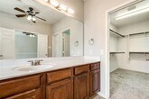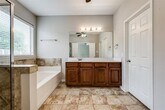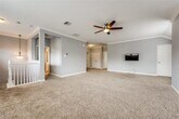 Granite countertops, hardwood flooring, down stairs primary bedroom, extensive crown molding, ample storage space, walk in closets, huge game-room, media room, an island kitchen, down-stairs study, and ready for move in. Radiant barrier added for efficiency. A nice size covered back patio, a high back fence with retaining wall backing up to a greenbelt for added privacy and relaxation! This property is also for sale!