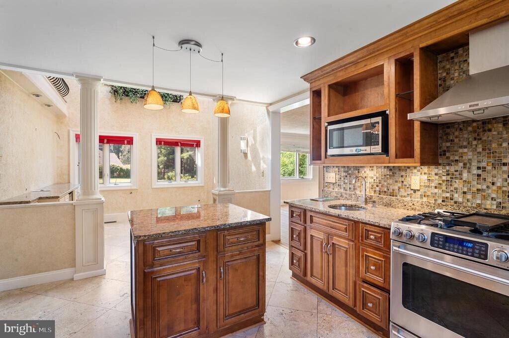 Available 1/3/2026 - or possibly sooner - for lessee move in. Custom built home on 2.25 acres, backing up to private woods in the sought after Cloverly section of Silver Spring - complete with large koi pond, outdoor entertainment space with fireplace and grill. This kind of unique home, minutes from DC, approx. 6 mi to Redline metro, is rarely available as a lease. Light-filled, generous sized rooms, including built in-cabinetry, marble and granite countertops, recently refinished oak floors, crown molding, wainscoting, and many detailed finishes throughout. Two-story foyer with oversized staircase; gourmet kitchen; formal dining room with amazing view to the backyard; large fully conditioned sunroom. Great for entertaining. Two-story atrium-style eat-in kitchen area is highlighted by light streaming through the open-concept second floor balcony and skylights. The private office/library is surrounded by built-in, maple bookshelves and many windows. Gated and largely fenced backyard. Upstairs, 4 large bedrooms including the primary with walk-in closets and private bath. The basement has a bar, sitting / game area and an additional full bath. New HVAC, water heater and other system upgrades. Take a stroll down the landscaped rock path to the back and out the gate to walking trails. In addition to a two-car attached garage, a one-car garage is attached to a large, detached workshop. The workshop and 3rd detached garage that is attached to the workshop building is not included in the lease price - landlord wants to use as long term, rarely accessed storage. Workshop lease negotiable for additional price. Pets permitted on a case-by-case basis with additional security deposit for each pet. Tenant is responsible for all utilities (electricity, propane, internet, phone, etc.); tenant is responsible for lawn care. Note: HVAC is a heat pump and propane is only used as backup / supplemental source, some cooking appliances; and may also be used for fireplace. Owner will arrange for professional pond maintenance. Repairs subject to home warrant deductible. Repairs to be done via home warranty first.