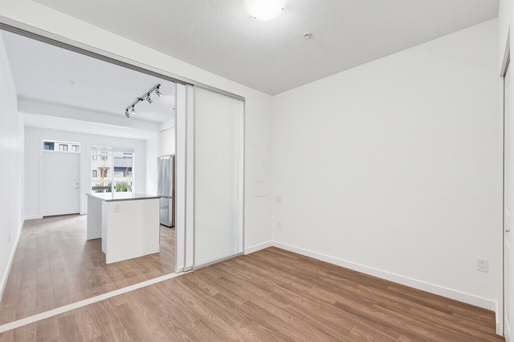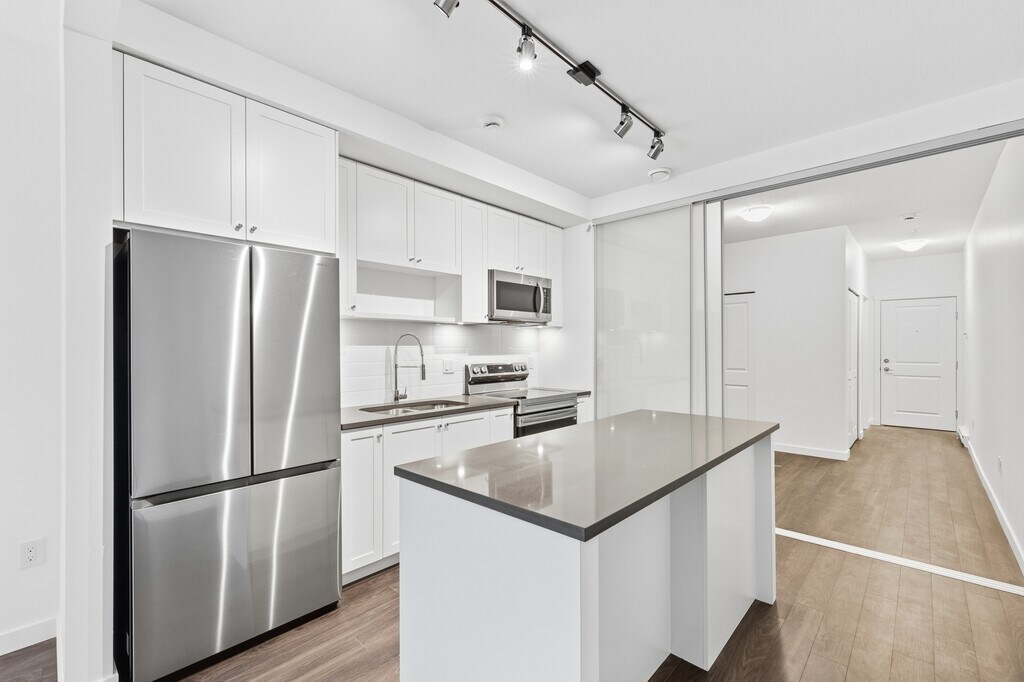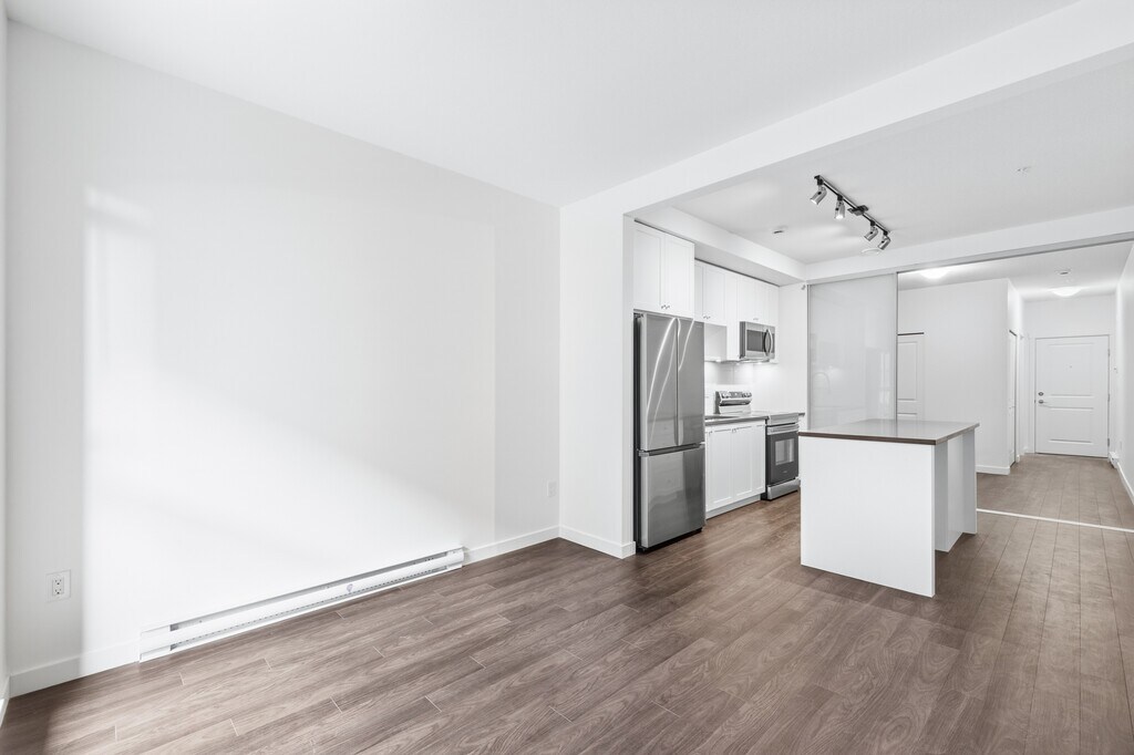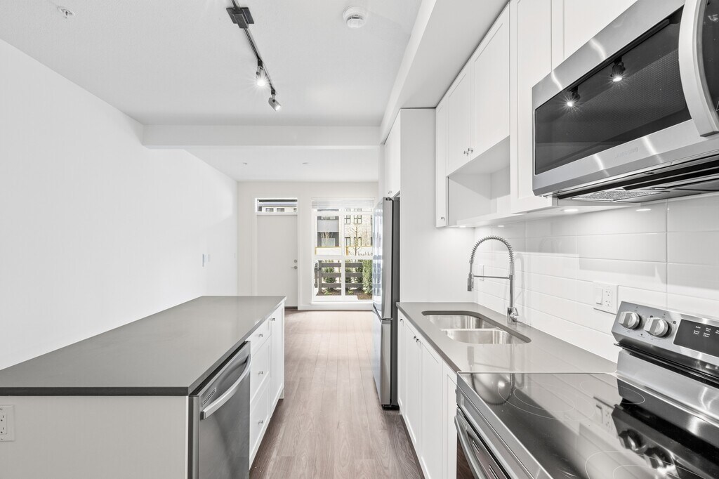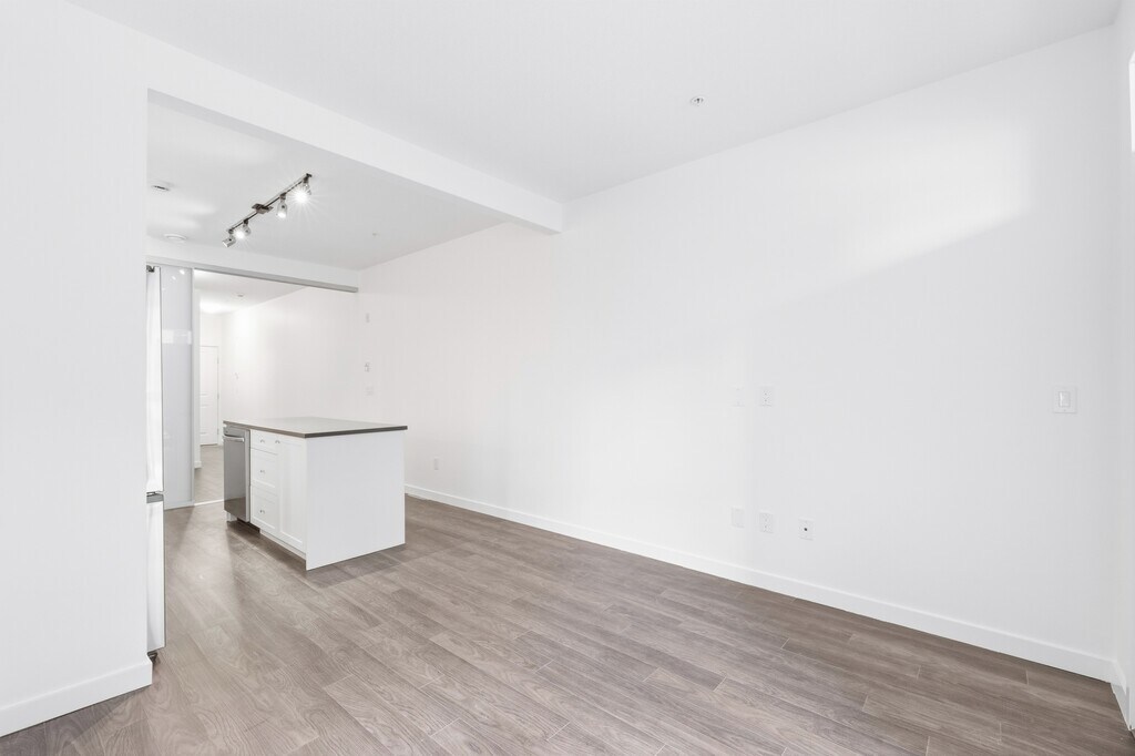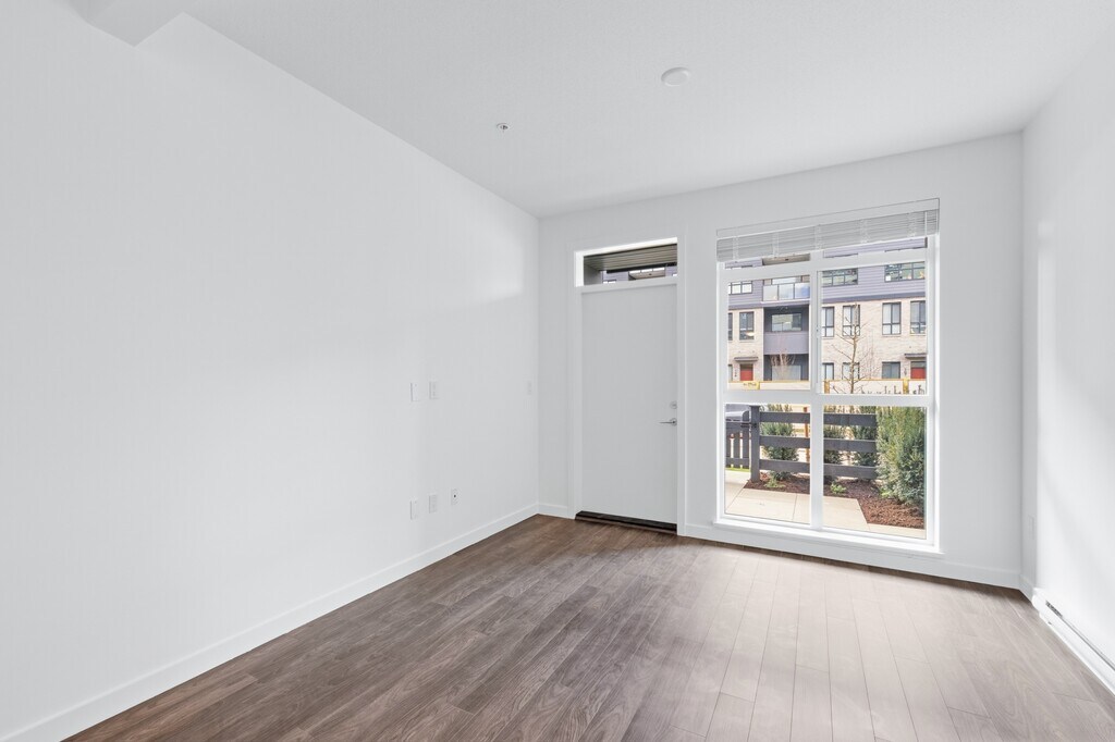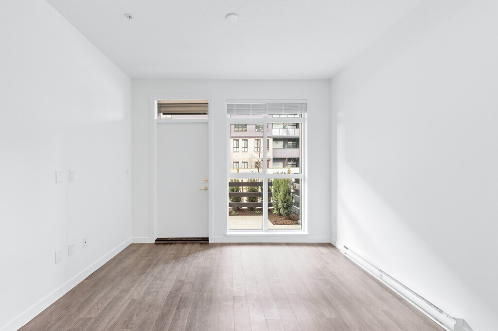 Now Available for Rent — Bright Jr. 1 Bedroom on the Ground Floor Modern Jr. 1 Bed (studio-style) home featuring 10 ft. ceilings and a full kitchen with island, quartz countertops, and full-size appliances. This lofty, spacious suite includes a patio door that opens onto a nice-ground floor patio. Enjoy in-suite laundry and access to exceptional building amenities: rooftop gardens, BBQ areas, lounge, gym & yoga studio, and walking paths. Includes 1 parking stall in a secure underground garage plus 1 storage locker. Located in the heart of Fleetwood—steps to Fresh Street Market, restaurants, medical clinics, parks, schools, bike trails, and just a 1-minute walk to the bus and future SkyTrain station. One Year Lease. Screening Required. Utilities Separate. Property Listed by Four Seasons Property Management Ltd
