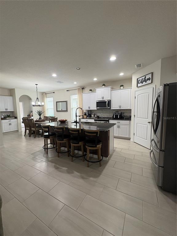 The rental price will be $3,290 per month plus an additional $260 per month for solar energy,for a total of $3,550 per month. This amount replaces (or significantly reduces) what you would normally pay on your electricity bill. Enjoy a home that's ready for the future! This beautiful two-story home is located in Phase III of the fantastic Waterleigh development in Winter Garden. It's a 600-acre community with spectacular green spaces and beautiful lakes. It's located just 3 miles from Disney World,a strategic location that allows you to enjoy the Disney fireworks show from the front row. This beautiful single-family home has two stories and a total of 2,500 square feet. Ceramic tile flooring extends throughout the ground floor,including the wet areas. Upon entering,you'll find a spacious bedroom with an ensuite bathroom and a half-bath for guests. The main living area features an open concept with decorative details on the walls and integrated lighting in the kitchen,living room,and dining area. The kitchen is very spacious and well-equipped,with a central island and double sink—a great space for family gatherings. Upstairs,you'll find a flexible room that can be used as a TV room or office,as well as two additional bedrooms,a shared full bathroom,a laundry room,and a spacious master suite with a private bathroom. Waterleigh is a resort-style community that includes first-class amenities,such as two beautiful clubhouses with two enormous swimming pools,fitness centers,mini-golf,beach volleyball,tennis,a barbecue/picnic area overlooking the lake,two dog parks,and much more. Lawn maintenance is included in the homeowners association fee. This beautiful home features installed solar panels,resulting in energy efficiency and a reduced environmental impact. Clean,modern energy,electricity savings,and a solar system already installed and operational. MLS# S5138311