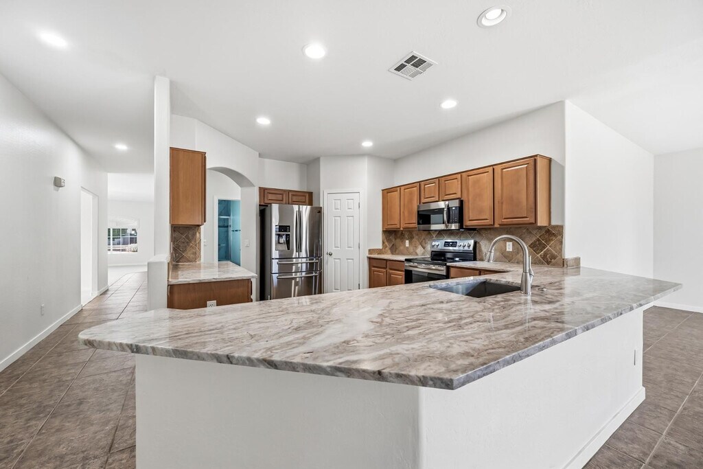 Welcome home! This single-story gem features 3 bedrooms,2 bathrooms,a 2-car garage & RV gates. Inside,you'll find sizable living spaces with upgraded carpet,tile in high-traffic areas,plenty of natural light & a soothing palette that makes you want to stay. The impeccable kitchen is equipped with plentiful storage cabinetry,tile backsplash,spacious counters,and built-in appliances for a seamless cooking experience. The serene main bedroom is a true retreat,offering a practical walk-in closet for easy organization and a full bathroom with an oversized dual-sink vanity & a separate shower/tub. The perfect-sized backyard is complete with a covered patio ideal for morning coffee,flagstone flooring,a fire pit & a grass area perfect for games. Pets are welcome with approval. $50/mo pet rent. Tour Today. MLS ID 7018987