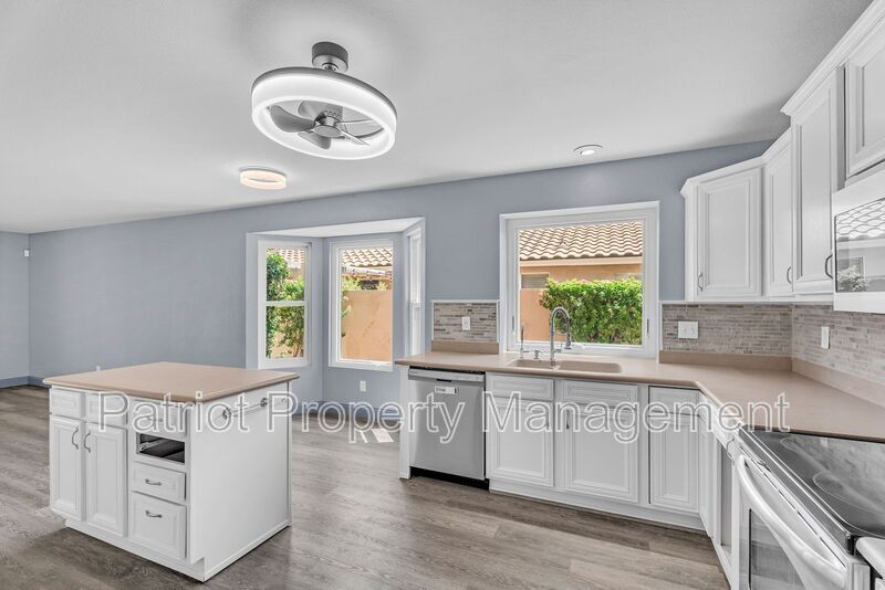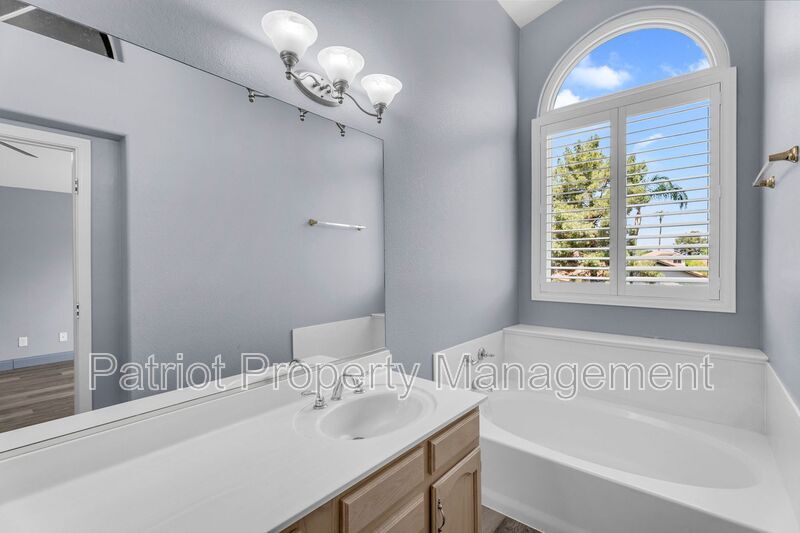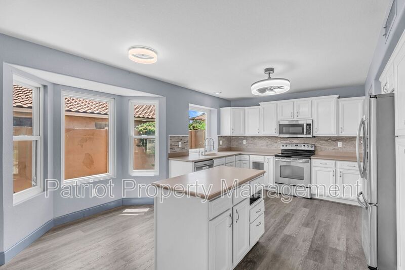 Welcome to this stunning lakefront home in the sought-after Pecos Ranch community! This beautifully maintained property features fully owned energy-efficient solar panels and all new Anderson windows, ceiling fans, flooring, interior paint, baseboards, refrigerator, and a sliding door in the primary bedroom. Plantation shutters throughout. Enjoy a flexible layout with a formal dining room and a spacious great room that opens to the backyard—complete with a grassy play area and serene waterfront views. The elegant kitchen boasts stainless steel appliances, Corian countertops, mosaic tile backsplash, a center island, and abundant white cabinetry with crown molding. The sunny breakfast nook with bay window adds extra charm. Upstairs, the primary suite offers lake views, a walk-in closet, and a private bath with dual sinks. The backyard is perfect for relaxing or entertaining with a covered patio, play space, and a navel orange tree. Additional upgrades include a new sprinkler and drip system, Night Owl security system, Ring camera, and Nest thermostats. Community pool and tennis courts are just down the street. A must-see! OWNER IS A LICENSEE. Apply at Tenant will pay $5.00 monthly admin fee, $24.00 monthly HVAC Preventative Maintenance. Total move-in cost equals 1 month's rent, 1 month's security deposit, cleaning deposit.