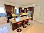 Modern 5BR/3.5BA one-story home for rent in Palmetto Bay, built in 2017. Features include high ceilings, impact windows, 8-ft doors, LED lighting, and a gourmet kitchen with quartz/granite counters and stainless steel appliances. The spacious primary suite offers a large walk-in closet and luxury bath with rain shower, jet Jacuzzi, and double vanity. Enjoy a SMART salt-water pool with sun deck and waterfall, plus a covered terrace and patio. Two-car garage and circular driveway. Pool, garden, and alarm service included. Great location near schools, parks, and shopping. Easy to show.