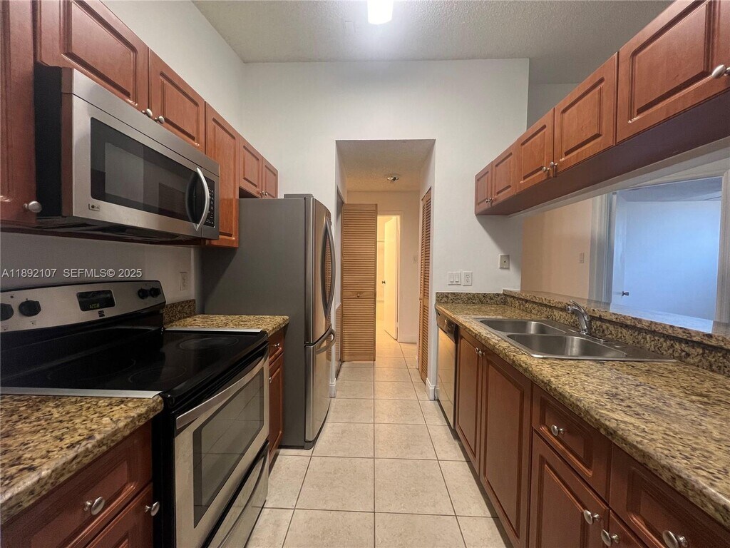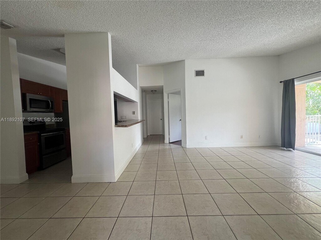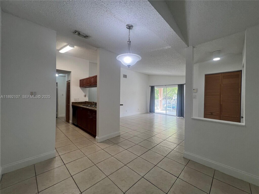 Beautiful 2/1 condo with balcony, located in the amazing Gated Royal Palm Place in the Hammocks Community. Centrally located, this second floor, corner unit has an updated kitchen with wood cabinetry, granite countertops, breakfast bar, stainless steel appliances, formal dining room and two spacious bedrooms, primary with Walking Closet. Wood laminate flooring in bedrooms and tile throughout the rest of the living areas. Washer/dryer is located inside the unit. Storage closet and beautiful high ceilings. One assigned parking space is located right outside the unit. Incredible amenities include pools, kids park, tennis court, gym, clubhouse, lake and plenty more.