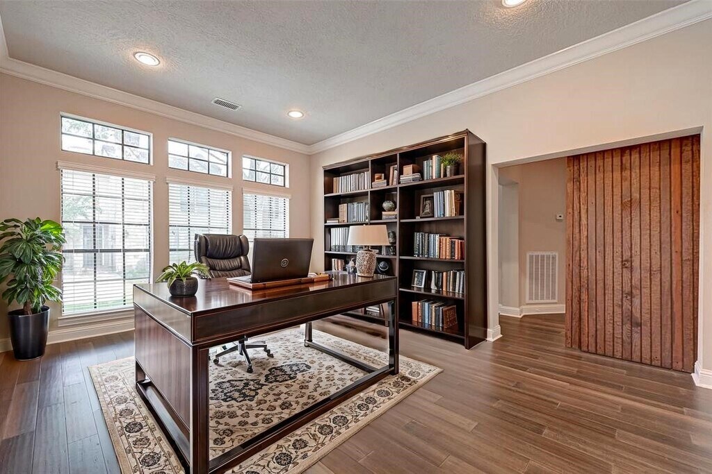 Elegant freestanding two-story home in a small gated townhome community,perfectly suited for a low-maintenance lock-and-leave lifestyle in the Energy Corridor. The beautifully updated kitchen features granite countertops,custom cabinetry,stainless steel appliances,and a spacious buffet-style serving area. The first floor offers two large bonus rooms ideal for a den,office,gym,or additional bedroom,providing exceptional flexibility. Abundant natural light fills the home. Enjoy an attached two-car garage with epoxy flooring. Upstairs includes a luxurious primary suite with spa-like bath,garden tub,and custom “his & hers” closet,plus two additional bedrooms,game room,and full baths. Ideally located near Terry Hershey Park and close to everything. MLS# 11035127