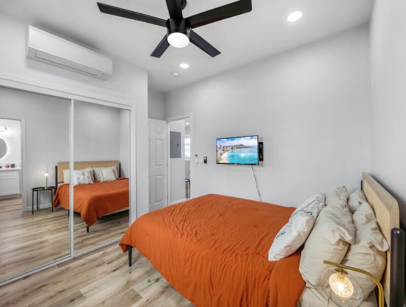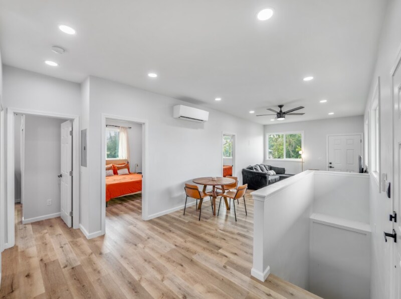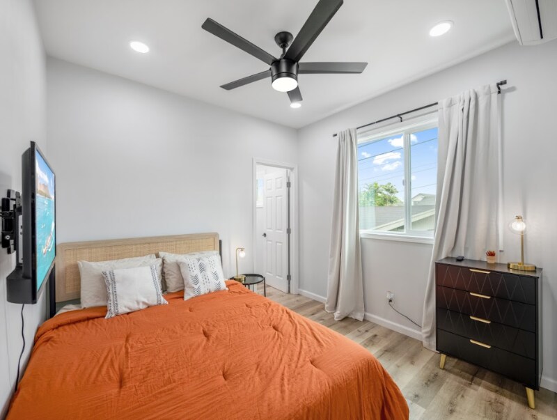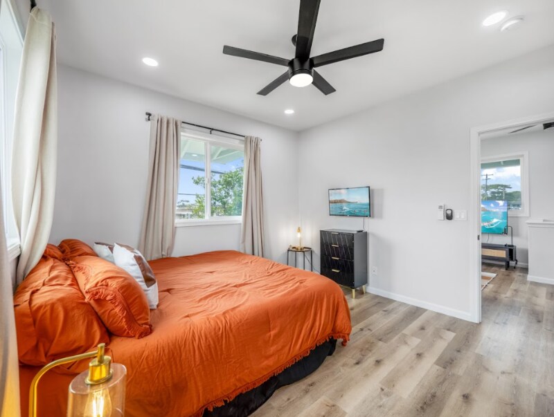 Property Id: 2377498 This stunningly renovated furnished 3 bed / 2 bath unit in sought-after Wahiawa Heights awaits you. Nestled in on the second floor of this cozy home, immerse yourself in the alluring charm of the transformed 3-bedroom, 2-bathroom abode, designed to be your tranquil sanctuary on the Oahu. Settled amidst tranquil community surroundings and friendly neighbors, this home provides the perfect comfortable modern haven for a memorable stay. The space This spacious upper unit offers ample room for relaxation and entertainment, making it an ideal haven for seeking a private oasis. Upon entering the three bedrooms, you will find inviting queen-size beds with luxurious settings, ensuring utmost comfort and tranquility during your restful nights. Each bathroom includes a modern shower spacious enough to wash away all your worries and prepare for the rest of your day, as well as touch-sensor mirrors to find the perfect lighting for your needs. The living spaces in the unit offer modern style and ease of relaxation for your experience, and gorgeous views of the mountainside. Step outside and enjoy a drink in the backyard while you soak up some sun and enjoy the sweet scents of the pua kenikeni tree. Also equipped with modern amenities and appliances including air conditioning, high-speed Wi-Fi and more. Included for your personal use, the unit has a private washer and dryer, allowing you to pack light and make the most of your stay. Paradise awaits! Guest access This particular unit is located upstairs on the second floor of the building. For your convenience, we have a lock-pad entry system located behind the back gate. Please use the code provided to access the property during your stay. If you have any questions about access, please contact us and we will promptly assist you.