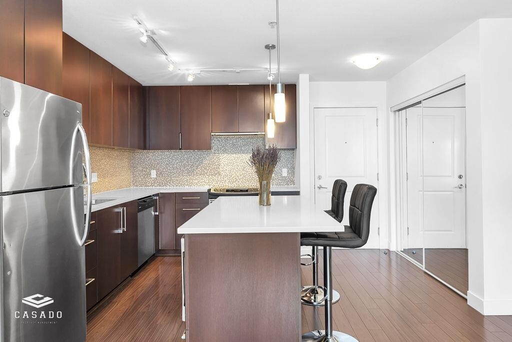 Bright and functional 2-bedroom,2-bathroom home located in Morgan Crossing,South Surrey. Bedrooms are positioned on opposite sides for added privacy. Open-concept kitchen and living area with stainless steel appliances and ample cabinetry,leading to a covered patio. Includes in-suite laundry,one secure underground parking stall,and one storage locker. Steps to shops,restaurants,grocery stores,transit,and schools. Minimum one-year lease. Tenant insurance required. No smoking. Pets may be considered upon approval. Move-in fee applies. Available ASAP. (id:63800) ID#: 2197501