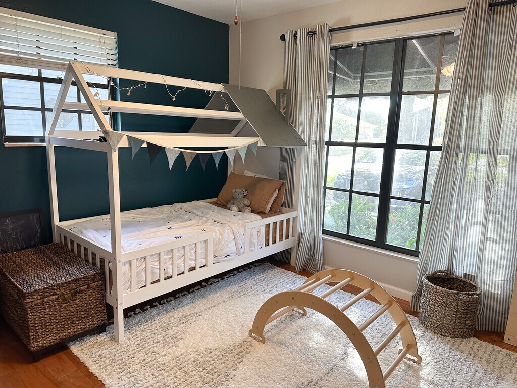 Check out this beautiful 3 bedroom, 2 bath 2,010 square foot home located in the quiet, family friendly Harbour Oaks neighborhood. This is definitely not your average boring builder grade home sitting directly next to your neighbor! Neighborhood is close to turnpike for easy access! Home features a large lot (.35 acres), fenced backyard and huge covered patio all on a quiet cul-de-sac in a beautiful neighborhood with a fishing pond and walking distance to Lake Toho and a playground/park. The AC was replaced last year with an brand new energy efficient system and also features a smart thermostat. Lawn care included in rent so no need to worry about mowing the grass! The interior of the home features 3 very spacious bedrooms as well as a large flex space currently being used as an office. Master bedroom features French Doors out to the patio and a very large walk in closet with custom shelves and a smaller second closet. Bedroom is big enough to create another sitting area and still have space for full size furniture. Relax in the stylish and tranquil newly renovated master bath with stand alone tub. The 2 additional bedrooms are located on the opposite side of the house and feature custom built closet systems in both GREAT sized bedrooms. The bedroom on the back of the house also features French Doors leading out to the patio. There is a bathroom between the bedrooms that was also fully renovated in 2023 to match the master bath. The home has a huge living room, dining room and kitchen with plenty of prep space. The living room has a gorgeous wood burning fireplace and French Doors leading out to the patio as well. The dining area features a large pantry and a storage closet and has a bay window overlooking the patio and fenced backyard. The kitchen features stainless steel appliances, plenty of storage and a large island, all with granite countertops. The large flex space is perfect for an office, playroom or dining room and features beautiful wainscoting around the room as well as large windows for great natural lighting. There is a full size laundry room with included washer/dryer and a 2 and a half car garage with built in storage for tools etc. as well as a very long driveway and beautiful mature oak trees. The house features wood flooring throughout as well as a Ring doorbell system and a Smart Thermostat. Dogs may be considered with additional deposit, but no aggressive breeds or puppies. Cats are not permitted due to severe allergies. Tenant is still in home until January 31st. Showings can be scheduled with notice. Text/Call owner to schedule. Available for move in mid February.