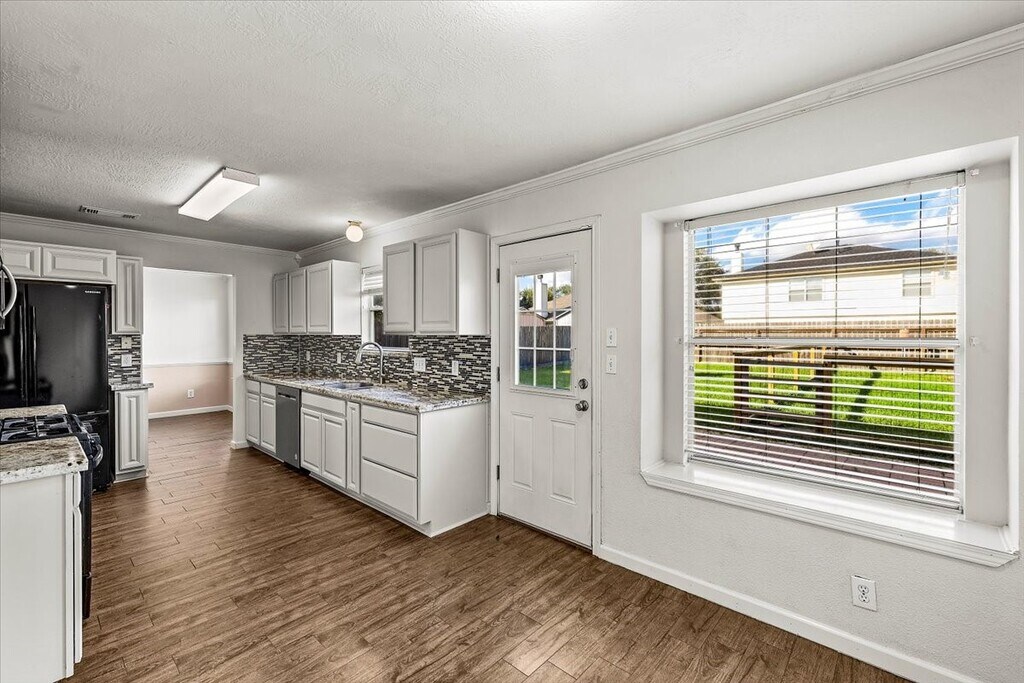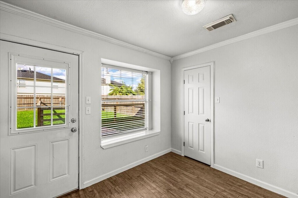 This beautiful brick-front residence offers impressive curb appeal with a covered front porch shaded by mature trees and a concrete driveway leading to a two-car garage. Inside,you’ll find generous living spaces perfect for entertaining or relaxing with family. The open-concept layout connects the living room,dining area,and kitchen—creating an inviting flow filled with natural light. The primary suite featuring a private bath and walk-in closet is located upstairs as well as the bedrooms are well-sized with ample closet space. At the top of the stairs is an additional space that can be used as a family room,play room or home office/study. The fenced backyard provides plenty of room for outdoor gatherings,pets,or a future garden. Conveniently located near I-45 for easy commutes to Houston or Galveston,this home is close to local parks,schools,shopping,and dining. MLS# 19093660