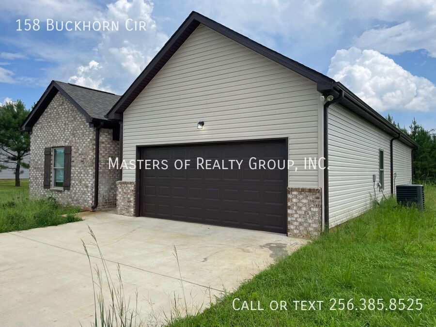 158 Buckhorn Cir, Weaver, AL 36277. Available on 10/4/25! 4-BD | 2-BA 1620 sq. ft. $1,750 /month Appliances included: Dishwasher, Freezer, Microwave, RangeOven, Refrigerator, and A/C Additional Features: Large Closets, Patio, and Garage-attached *This one-level home has an open floor plan with beautiful hard surface flooring. *The large living room is great for entertaining and the open kitchen has tons of cabinet space, a kitchen nook area, an island, and a pantry for additional storage space. *This home has three guest bedrooms and a master bedroom suite. Each guest bedroom is roomy and has ample closet space. *The master bedroom suite is privately located at the back of the house and features a large bathroom with a double vanity and walk-in closet. You can also apply early for this property! Should you have any questions, you can email or call/text at . NOTE: Any other listings that are not posted by Masters of Realty are SCAMS and we will not ask for money to be wired or sent via Cash App/Venmo or similar.