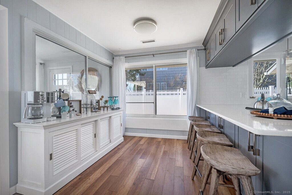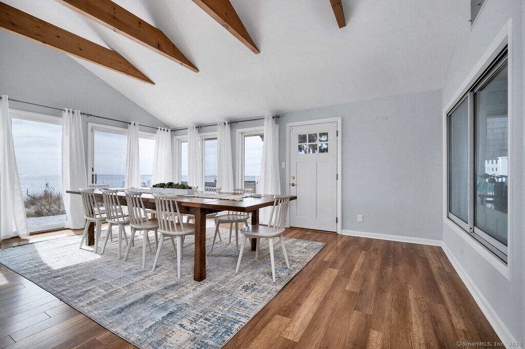 Call for Availability - Experience coastal living at its finest in this gorgeous furnished rental located directly on the waterfront, overlooking the serene beauty of Long Island Sound. Available for monthly or academic rental, this newly renovated beachfront home invites you to relax and unwind while enjoying breathtaking sunrises and sunsets. Nestled in the highly sought-after Pilots Point Community, the heart of the home is the stunning great room, featuring walls of glass that offer panoramic water views, a vaulted ceiling, exposed beams and hardwood flooring. This spacious area seamlessly blends a dining space with a comfortable family room, perfect for entertaining or quiet conversation. The remodeled kitchen boasts quartz countertops, bar-top seating, and stainless steel appliances, while the living room offers a cozy fireplace and a queen-size pull-out couch. With three spacious bedrooms-including one with bunk beds (full size bed with twin on top) and queen size beds in both the primary and middle bedrooms along with two beautifully updated bathrooms and a full laundry room, this home is designed for comfort and convenience. Additional features include central air conditioning, a private sandy beach, and a private driveway that accommodates approximately five cars. Whether you're seeking a peaceful retreat or a vibrant coastal lifestyle, this exceptional rental delivers it all. MLS# 24122596