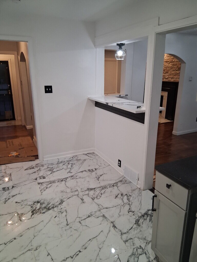 Charming Remodeled Colonial in Northwest Detroit — 3 Beds, 1 Bath, 1,450 sq ft Located at 15800 Vaughan St in Detroit (48223), this beautifully renovated two-story colonial blends original 1937 character with modern updates across approximately 1,450 square feet. The home offers three bedrooms, one full bath, a sunlit sunroom, upper deck, finished basement and a two-car garage — ideal for renters seeking space, style, and convenience in a desirable neighborhood. Refinished hardwood floors flow through the main living areas and bedrooms. A classic fireplace anchors the living room, creating a cozy focal point. Fresh paint and tasteful tile accents throughout deliver a clean, move-in ready feel. The kitchen has stainless steel appliances and a functional layout that includes a dishwasher and ample counter space. Three comfortable bedrooms share a well-appointed full bathroom. The sunroom provides an ideal spot for a home office, reading nook, or informal dining area, while the finished basement offers flexible extra living space for a media room, gym, or storage. Enjoy private outdoor living with a rear patio, upper deck that capture light and provide views of the neighborhood. A two-car garage ensures secure parking and additional storage. The home includes an alarm system, renovated systems and fresh interior finishes. Please note the property does not have central air conditioning. Close to shopping, transit options and major highways. Rent is $1,700 per month with a $1,700 security deposit. Standard lease terms apply (not month-to-month); contact the listing agent to confirm availability and lease duration.