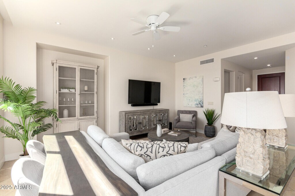 Are you looking to rent in one of Scottsdale's most prestigious condominium communities? Come view this,spacious 5th floor Landmark condo with stunning views of Camelback Mountain,city lights and the lush greens of The Westin Kierland Golf Club. The Landmark is located within walking distance of both Kierland Commons and The Scottsdale Quarter and has a minimum rental period of 6 months. This home is offered fully furnished designed for both comfort and style with an open concept floor plan,with 2 private bedrooms both with en suites,private office and an elegant powder room. All you need are your clothes and bathing suits. The community offers great amenities including gated entry with on-site guard. You don't want to miss seeing this.