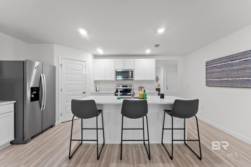 This beautifully built 4-bedroom,2-bath rental home offers modern comfort,functional space,and low-maintenance living. Inside,you’ll find an open,airy layout with granite countertops,durable EVP snap-lock flooring,and an energy-efficient LED lighting package throughout. The spacious kitchen flows easily into the main living area,making it ideal for everyday living and entertaining. The primary suite provides a private retreat with a double sink vanity,garden tub,separate walk-in shower,and a large walk-in closet. Additional bedrooms are well-sized and thoughtfully positioned to provide flexibility for guests,home office space,or family needs. A generously sized laundry room and convenient access from the garage add to the home’s practical design. Step outside to enjoy the wide covered back porch—perfect for relaxing evenings,outdoor dining,or hosting guests. With quality construction and modern finishes throughout,this home is designed for comfortable,easy living. Located in the Laurelbrooke subdivision in Fairhope,residents enjoy a peaceful setting surrounded by natural beauty. The community features walking trails,sidewalks,a playground known as the “Treehouse,” and a gazebo overlooking a scenic pond. Many homes in the neighborhood back up to green space or wooded areas,creating a quiet and inviting atmosphere while still being just minutes from everything Fairhope has to offer. Homes like this don’t stay available for long—schedule your showing today and secure your spot in Laurelbrooke. Contact us now for availability,application details,and move-in information.**