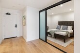 Enjoy a stylish experience at this centrally located condo in the vibrant Inner Mission neighborhood. This brand-new 3-bedroom, 2-bathroom residence at 1863 Mission Street offers high-tech and luxury living within its 1224 sq ft space. The building rises to 6 floors and features 37 delightful apartments, complete with high-speed elevators and a doorman. The condo boasts large bedrooms with blackout blinds, radiant floor heating, and beautiful oak hardwood floors. The kitchen is equipped with a Bosch fridge with an ice maker, Bosch dishwasher, and microwave. Enjoy the convenience of an in-unit washer and dryer, and stay comfortable with air conditioning throughout the apartment. Parking is available for an additional $400 per month. Pets are welcome with a non-refundable pet charge and a monthly fee. Certain restrictions apply to pet types and breeds, and a fine will be charged for not cleaning up after pets. Conveniently located near shopping, restaurants, and public transportation, this condo offers easy access to all the amenities the Inner Mission has to offer. The neighborhood is known for its vibrant atmosphere and walkability, making it an ideal place to call home. Check-out time is 11:00 AM, and our housekeeping team will arrive promptly at your scheduled checkout time. Please follow the checkout instructions provided, including starting the dishwasher and washing machine, and ensuring all garbage and recycling are disposed of properly. A fine will be charged for not cleaning up after pets. The apartment is equipped with Webpass Wi-Fi, making it remote work-friendly for those who need to work from home. Please note that a refundable security deposit of $1,000 is required and must be paid directly to the partner after the booking is confirmed. [SI]